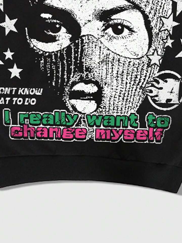 Street Life هوديحجم كبير فضفاض مطبوع بشعار للرجال، بنمط ستريتويركلاسيكي