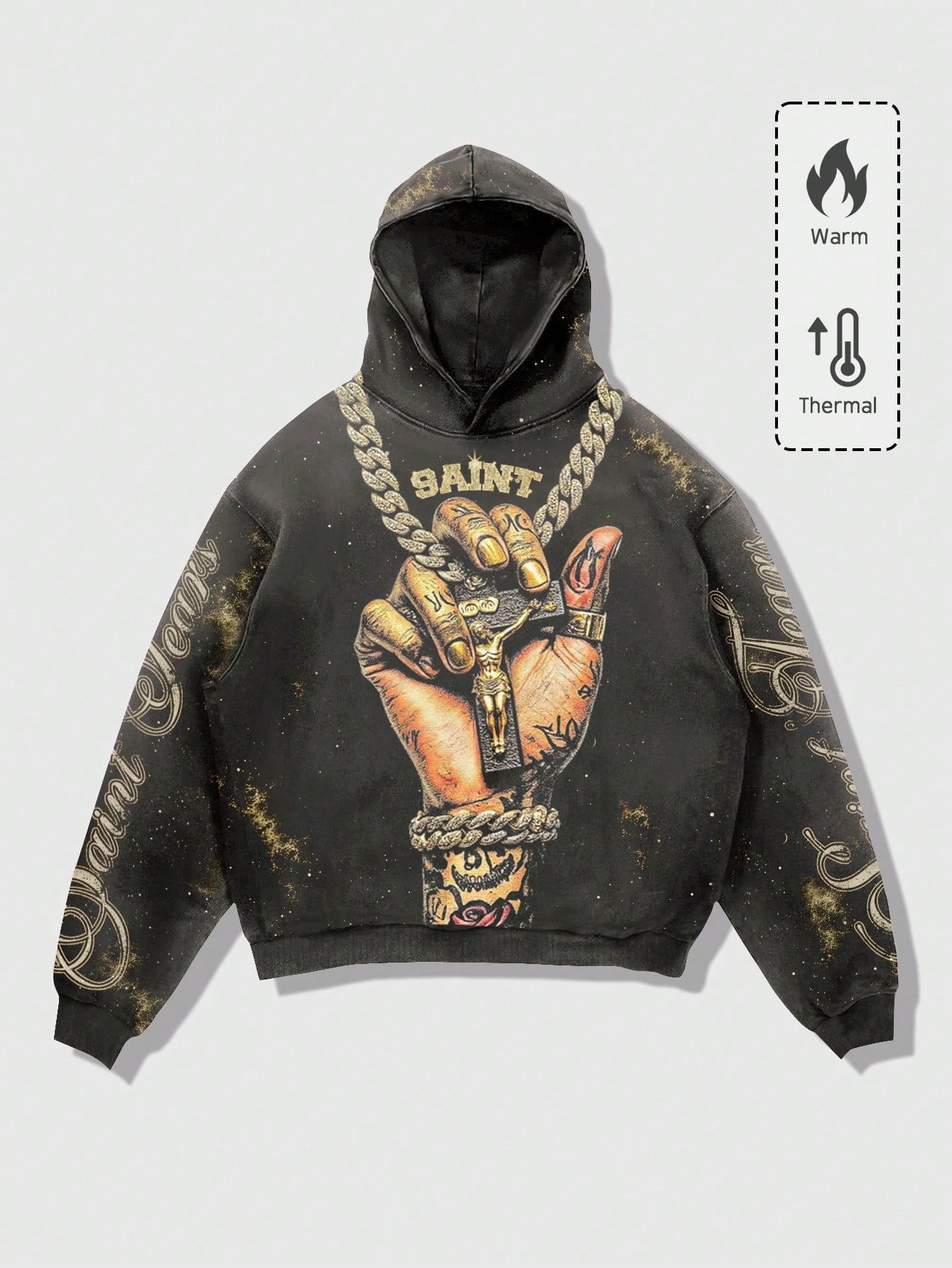 Street Life هوديي بطباعة جرافيك أسلوب بانك للرجال