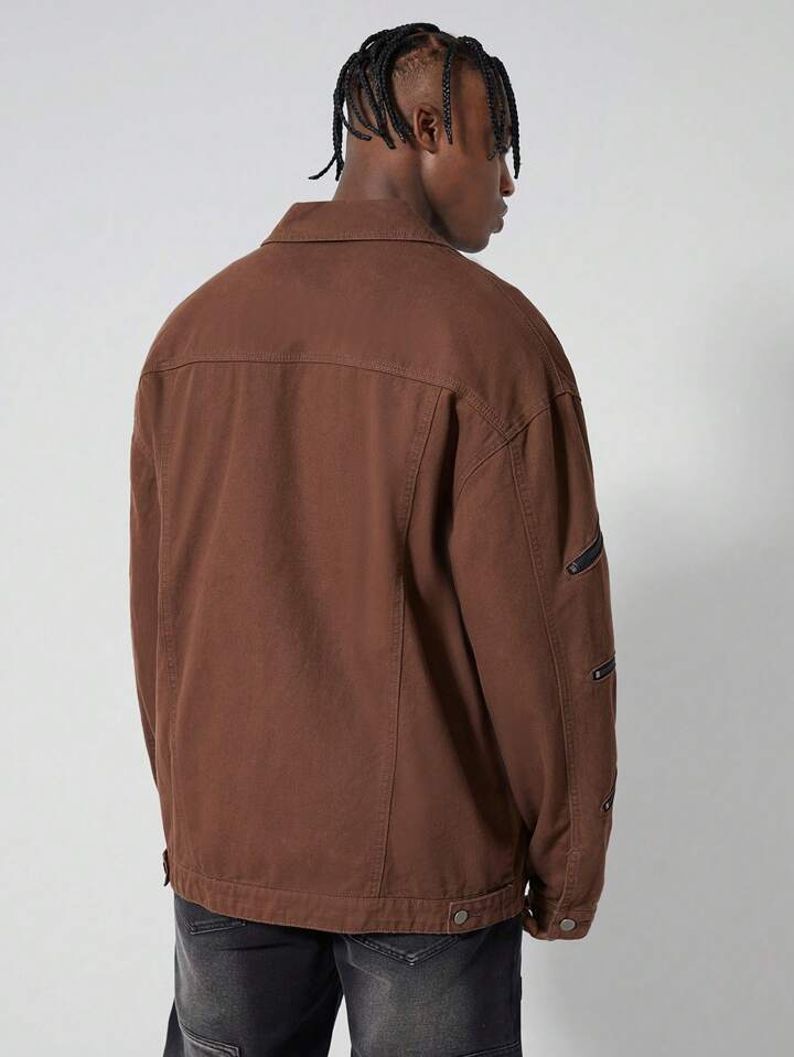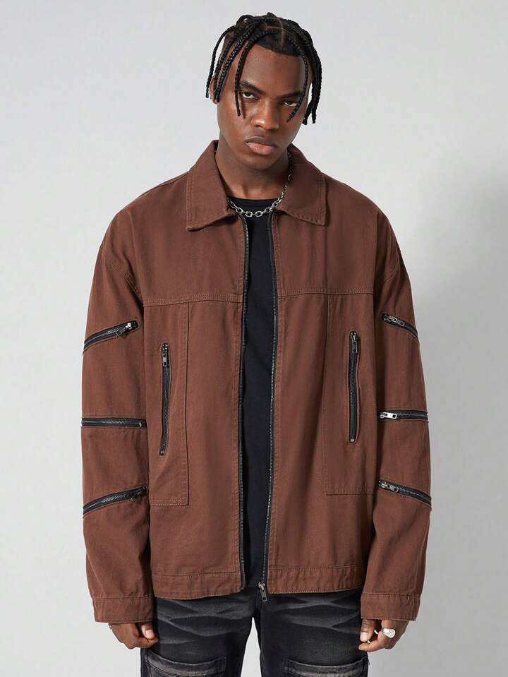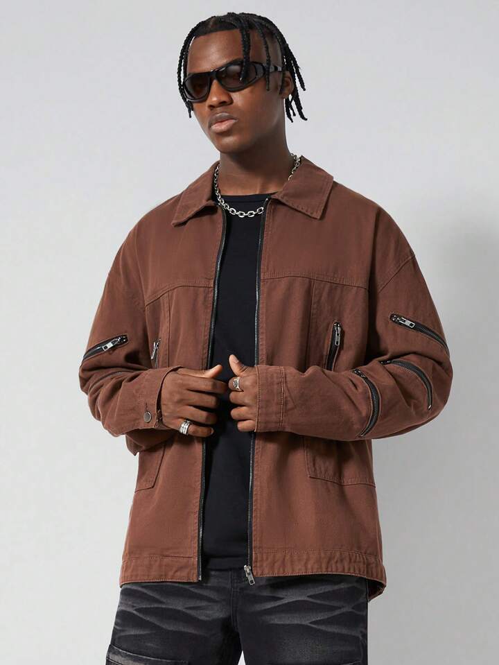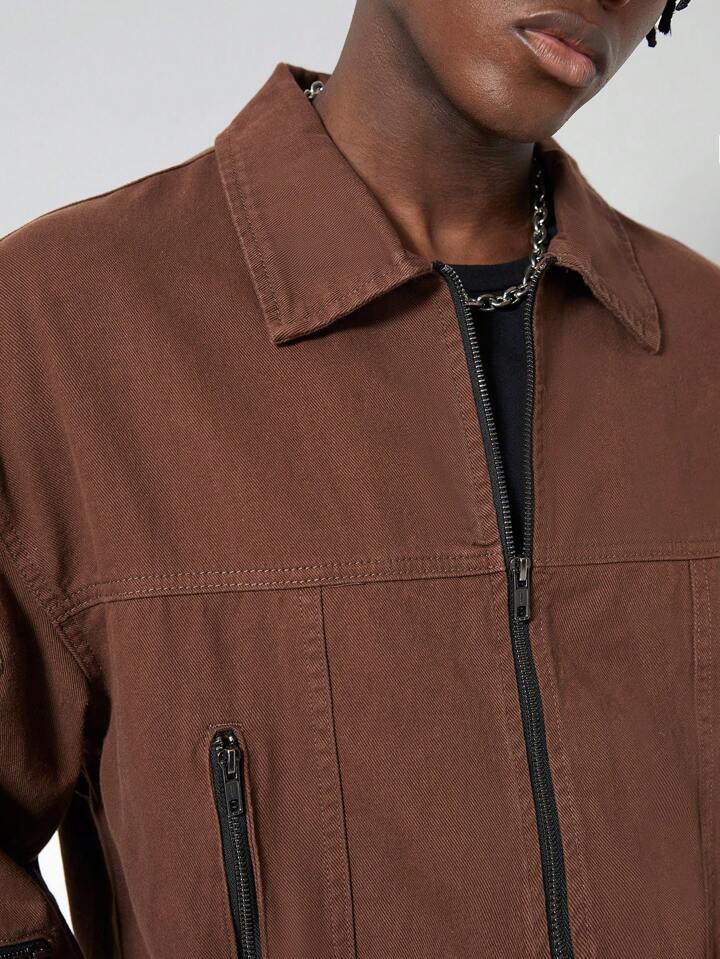 Street Life جاكيت جينز بسحاب وقصة فضفاضة بتصميم ريترو كاجوال للرجال