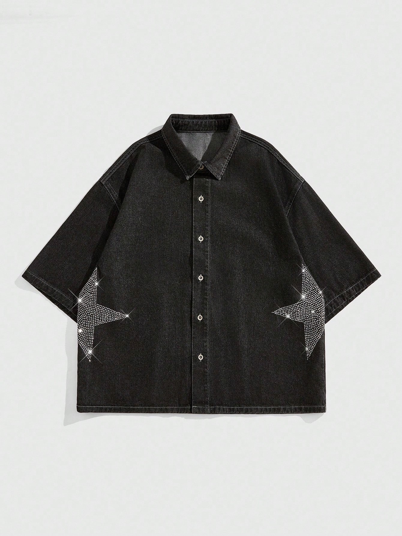 Street Life قميص جينز رجالي مزخرف بنجمة ذات خمسة رؤوس من الراين
