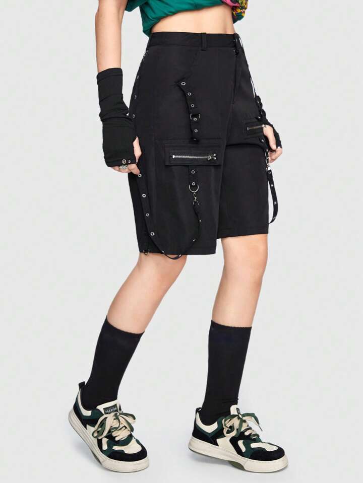 Street Life بنطلون قصير موحدة اللون سستة فتحات حلقي معدني