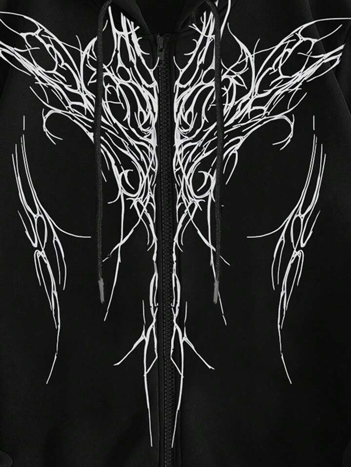 Street Life بلوزة هوديي مطبوعة بطبعة جوتيك مع سحاب أمامي وسير خصر للمراهقين الذكور