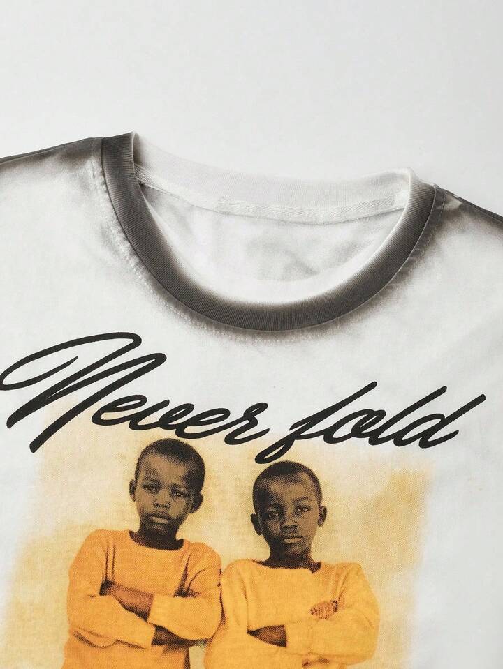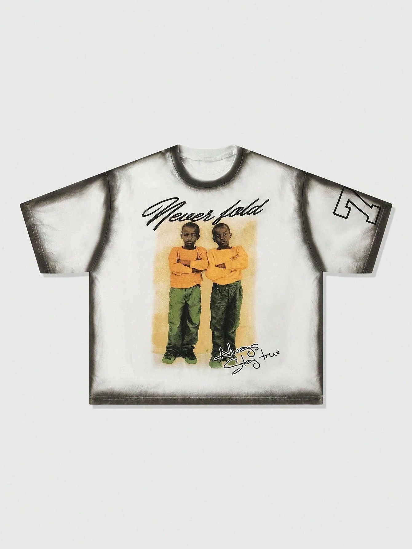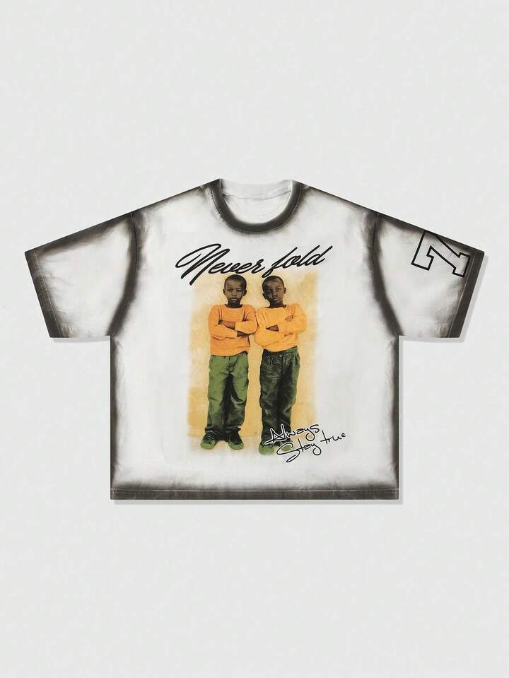 Street Life قميص تي شيرت فضفاض بياقة منسدلة مع رسومات حرفية ورقمية مرسومة باليد للمراهقين الأولاد