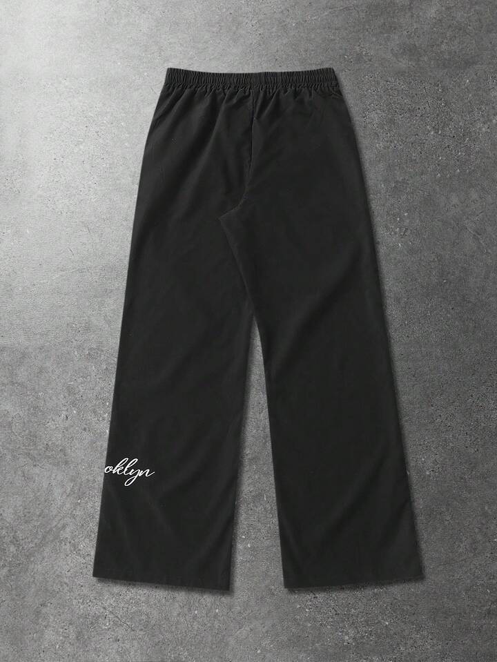 Street Life بنطلون مستقيم الساق مطبوع بطباعة جرافيك إنجليزية أمريكية يناسب الجنسين