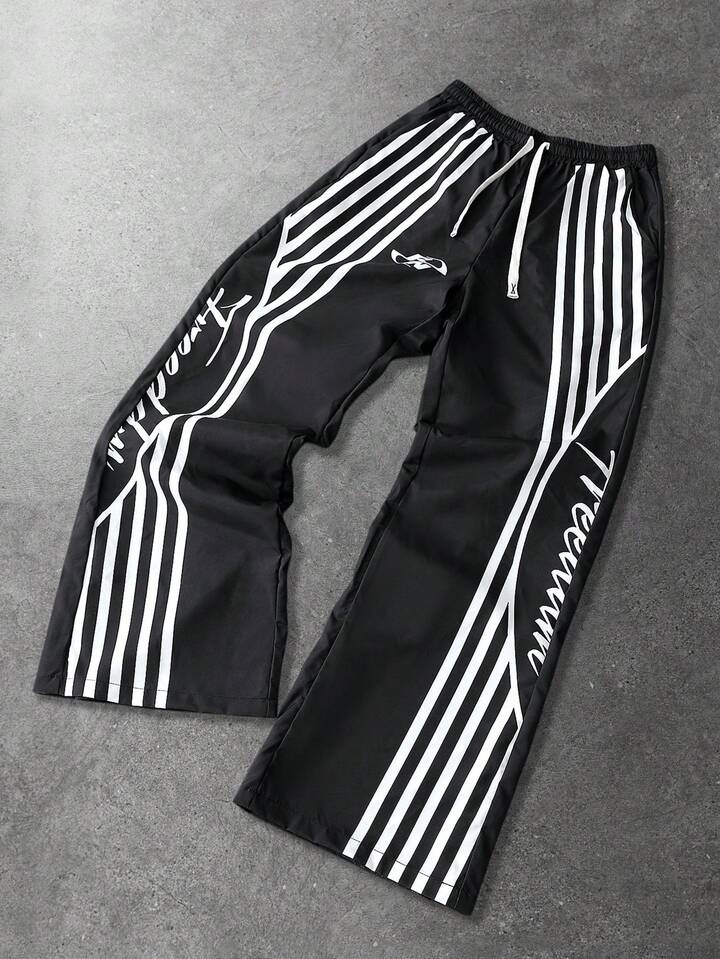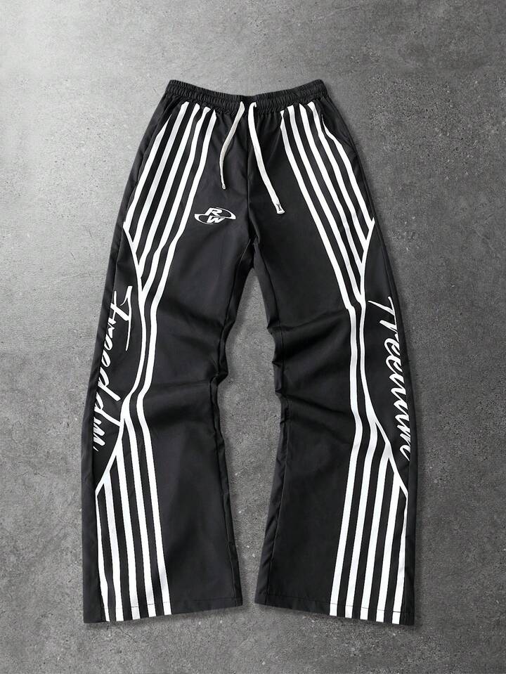 Street Life بنطلون رجالي/نسائي بقصة مستقيمة مع طباعة باللغة الإنجليزية الأمريكية، طراز كاجوال للشارع، مناسب للخريف والشتاء
