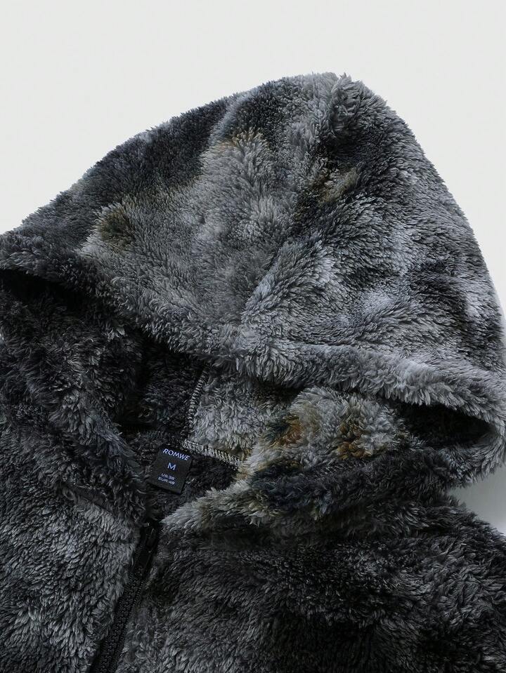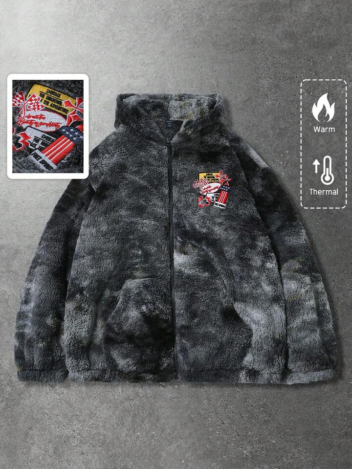 Street Life جاكيت كابوت يونيسكس مع تأثير صبغ التعادل وشارة مطرزة، بطانة حرارية للخريف/الشتاء