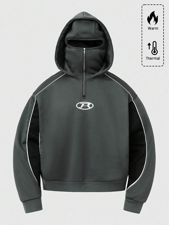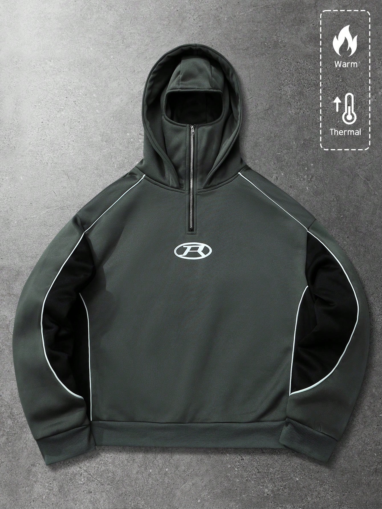 Street Life بلوزة هودي يونيسكس مع قناع، طباعة جرافيك إنجليزية، كاجوال للخريف/الشتاء