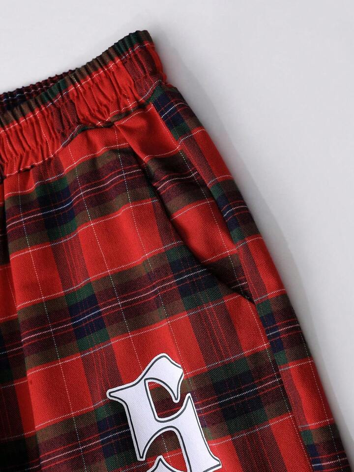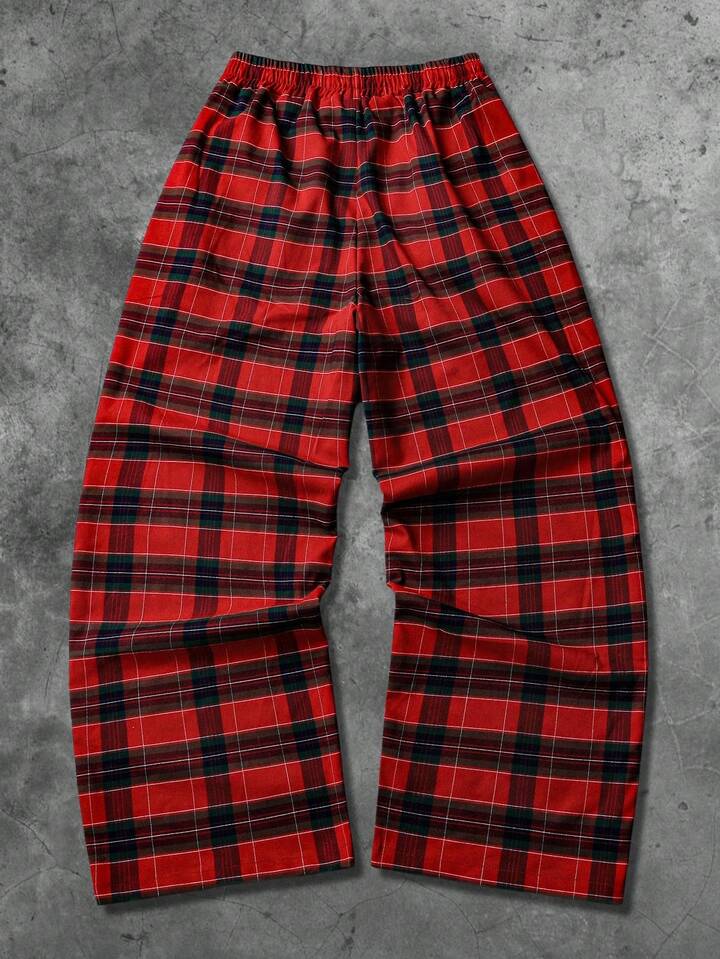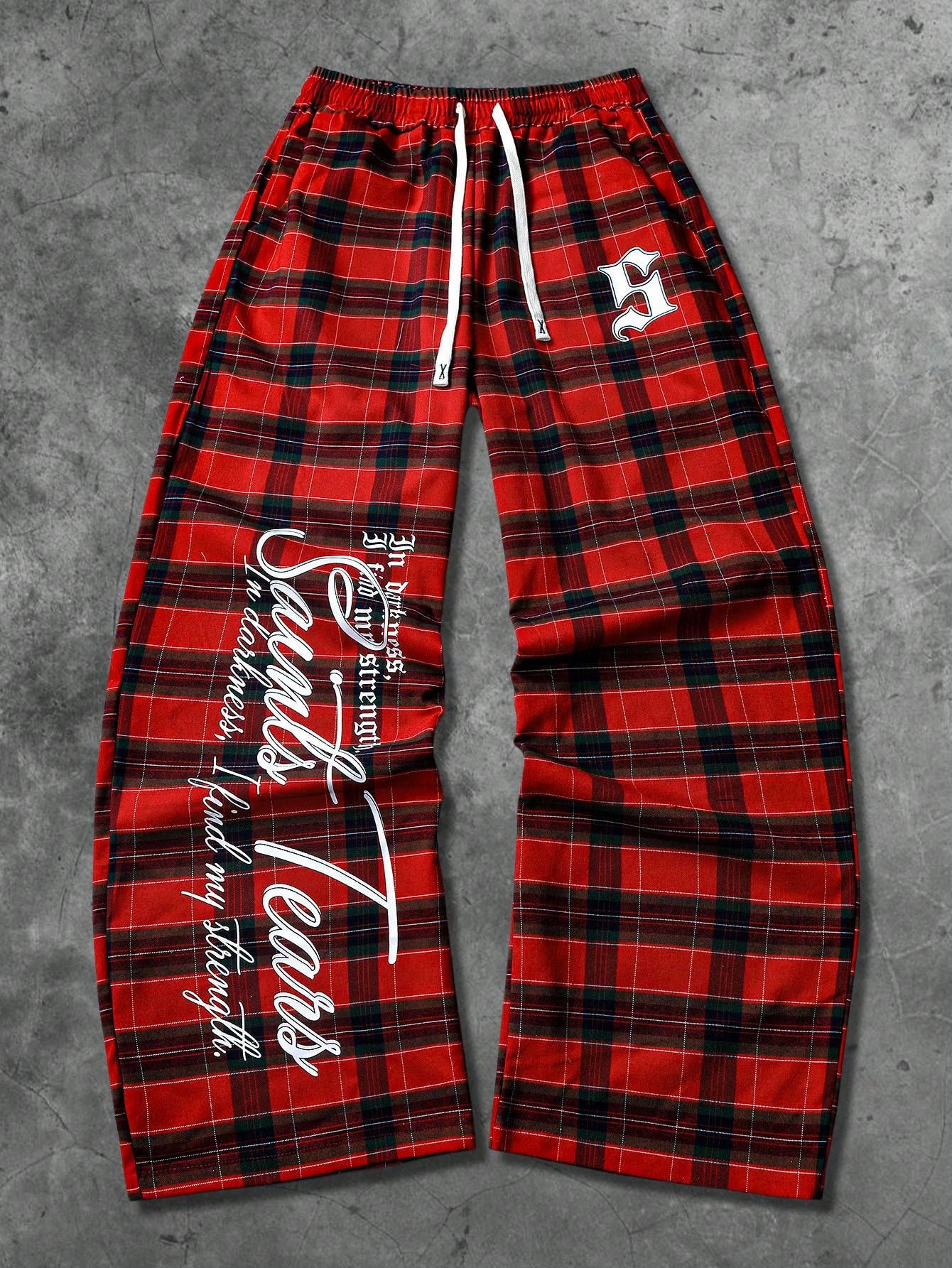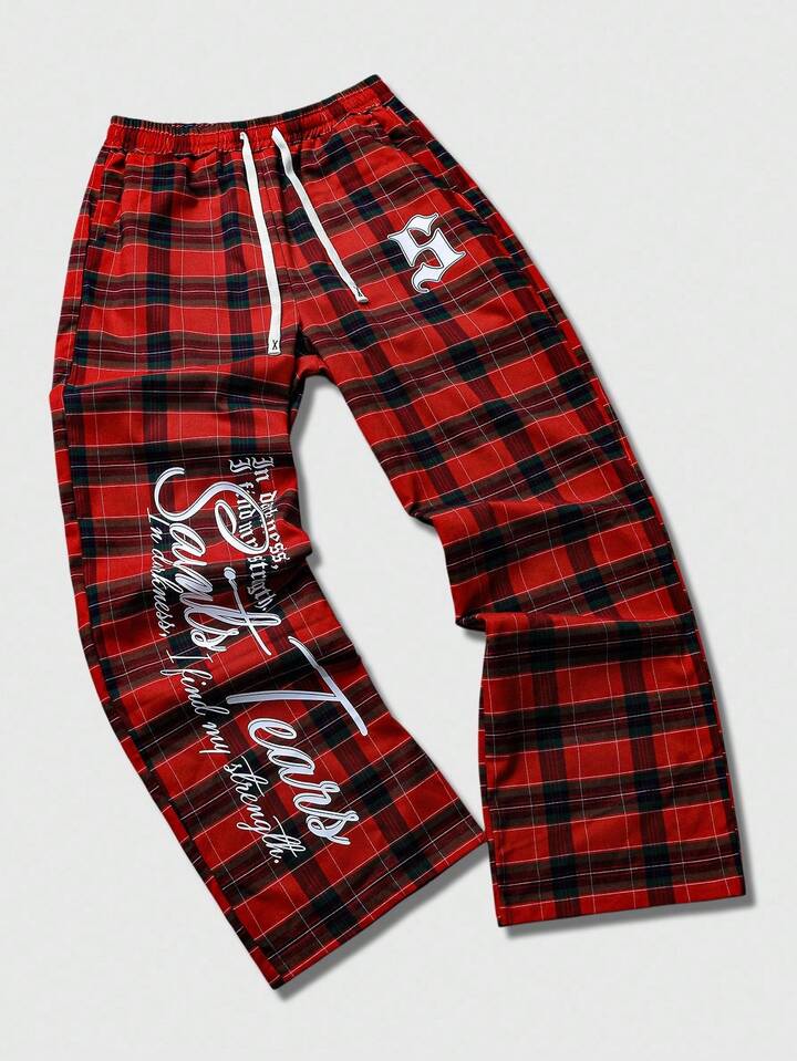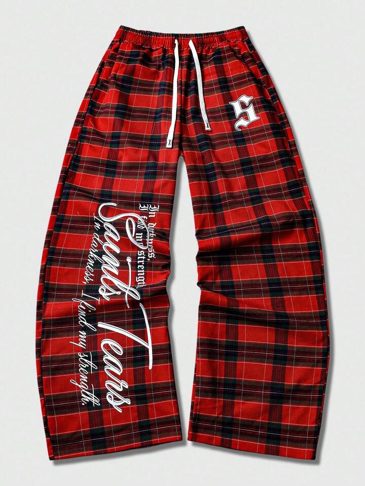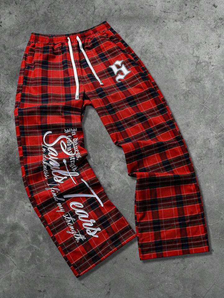 Street Life بنطلون رياضي مستقيم الساق بطبعات مربعات ورسومات إنجليزية، طراز الشارع، خريف/شتاء، يناسب الجنسين