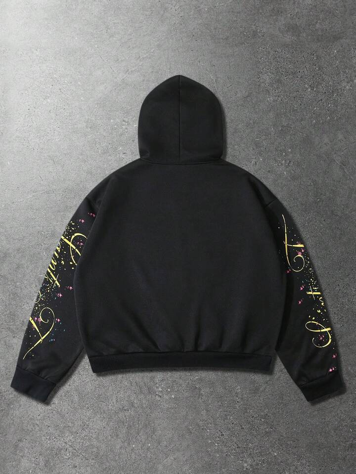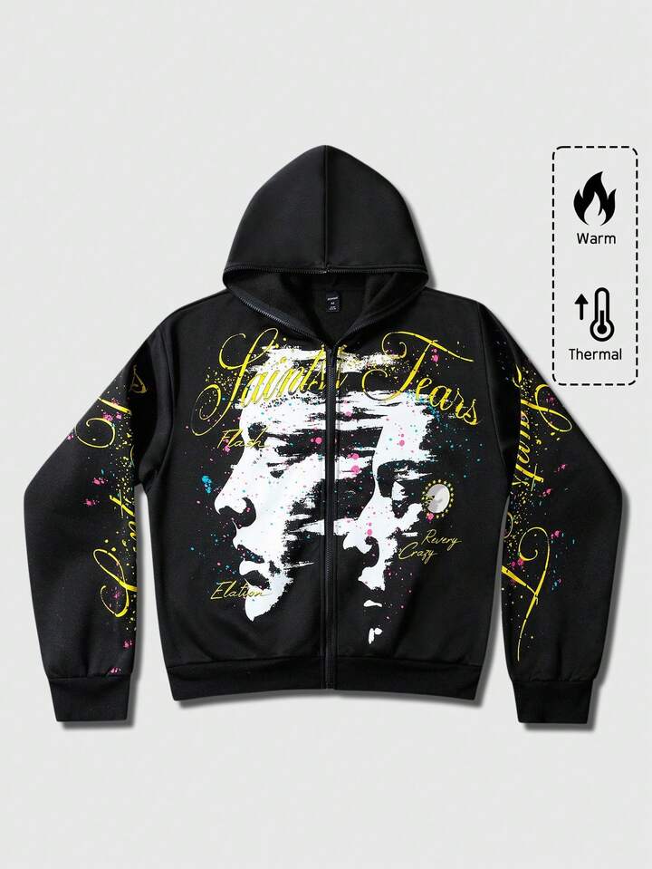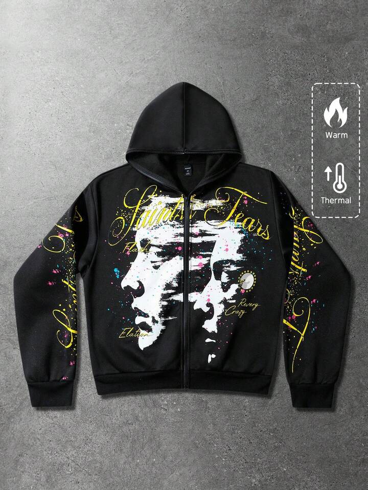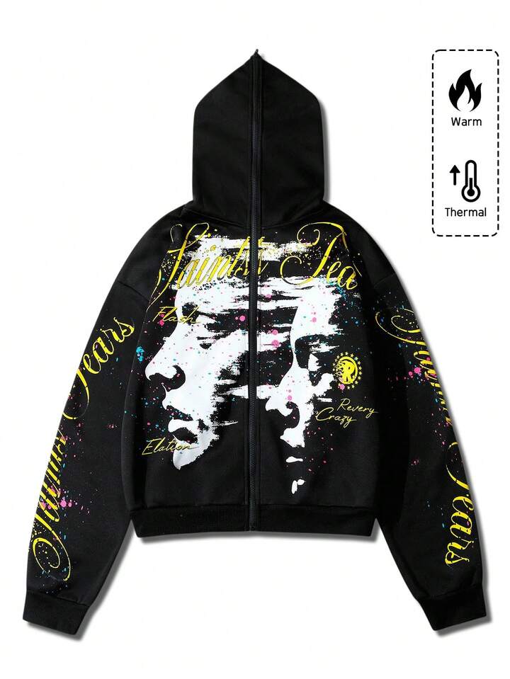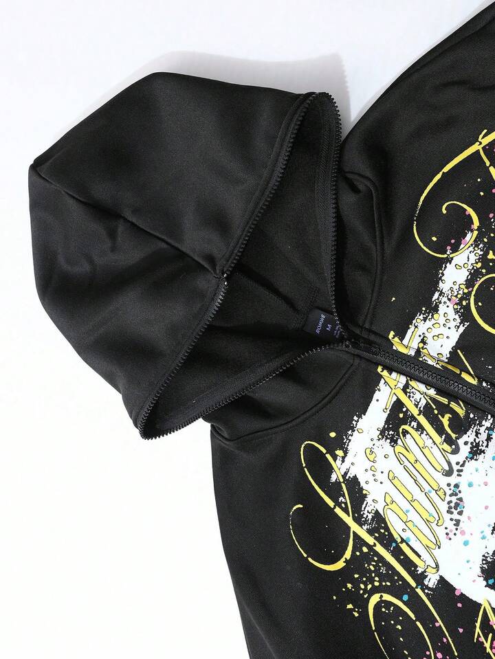 Street Life هودي سويت شيرت بسحاب ذو وجهين مطبوع عليه رسوم إنجليزية وأمريكية داكنة، ملابس كاجوال للشارع، مناسب للخريف والشتاء، يناسب الجنسين