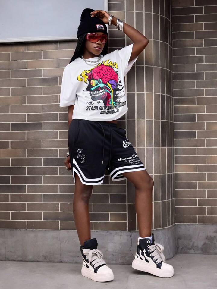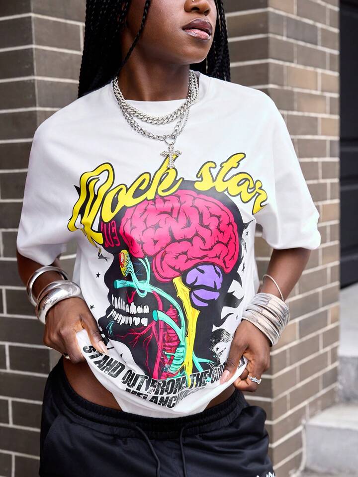 Street Life تي شيرت كاجوال للسيدات بطباعة حرف رقبة دائرية وأكمام قصيرة ، متنوعة الاستخدام للصيف