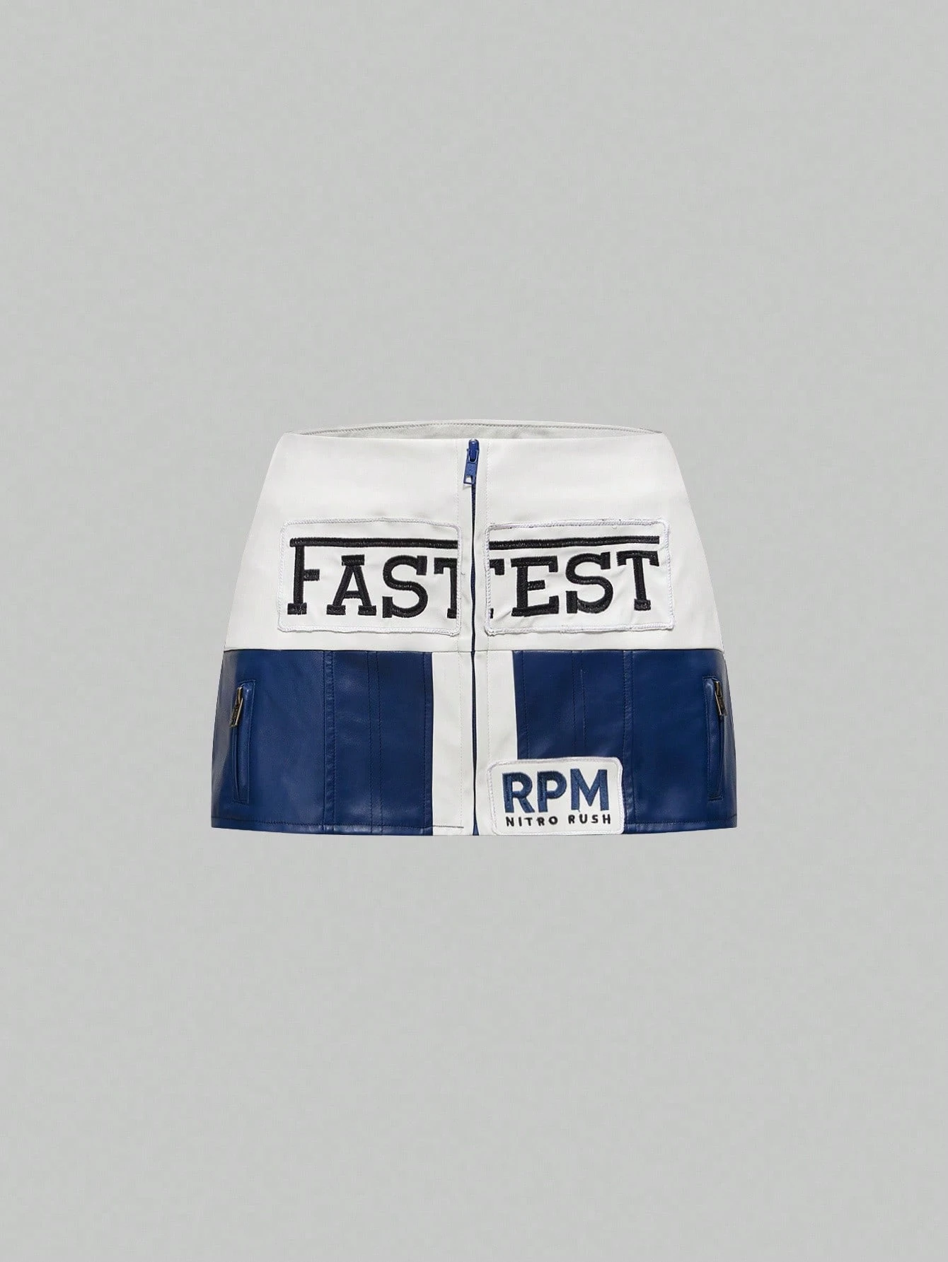 Street Life تنورة قصيرة جريئة مزينة بالتطريز والجلد الاصطناعي للسيدات، مناسبة لركوب الدراجات النارية