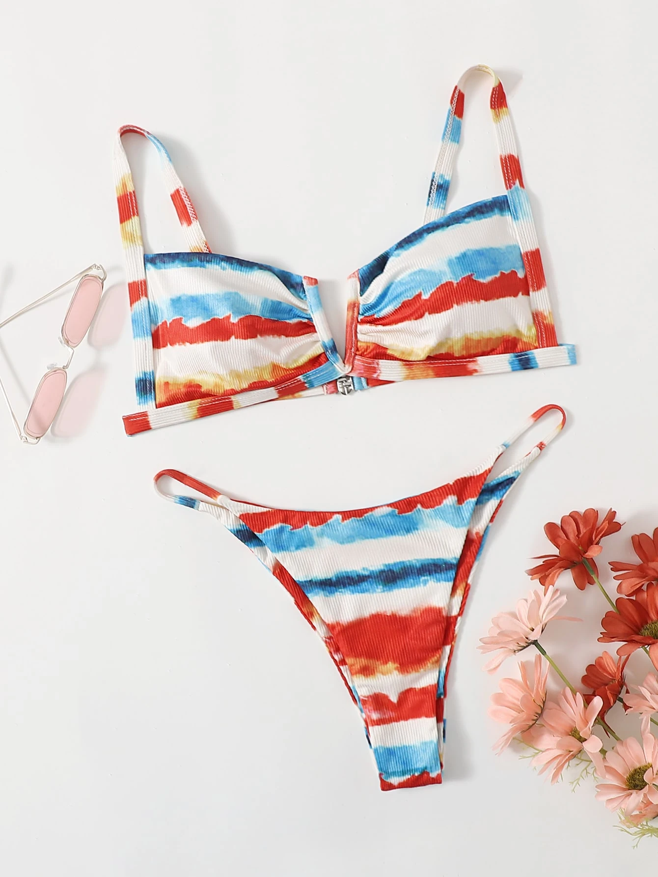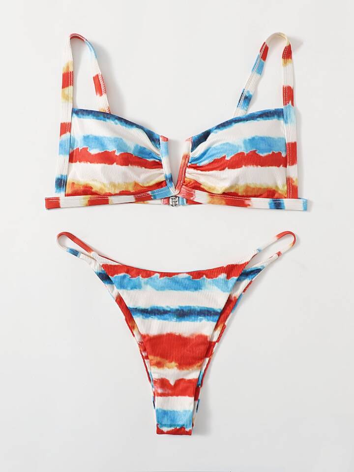 مجموعة بيكيني مخططة بسلك على شكل V لعطلة الشاطئ في الصيف
