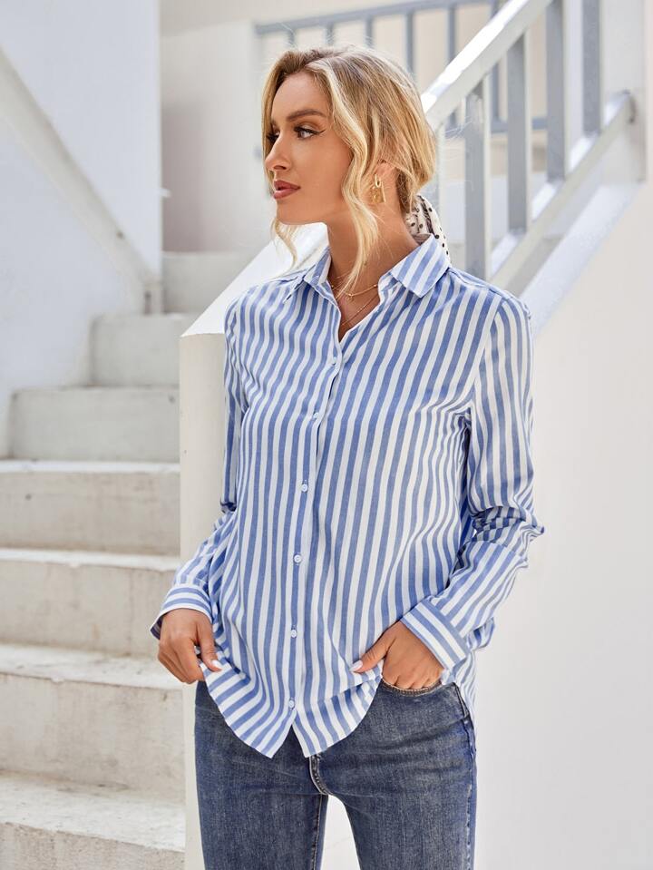 بلوزة بأزرار مخطط