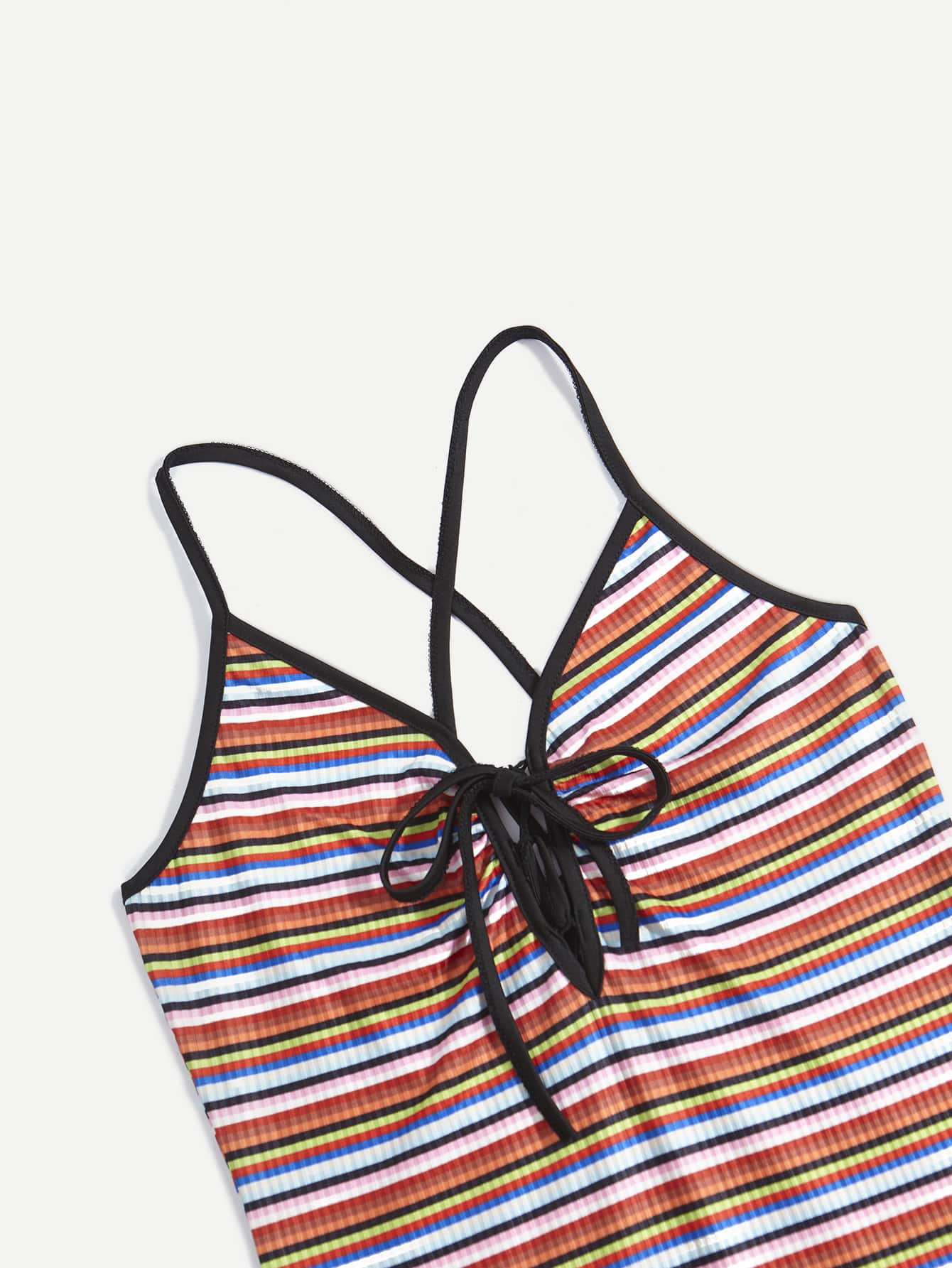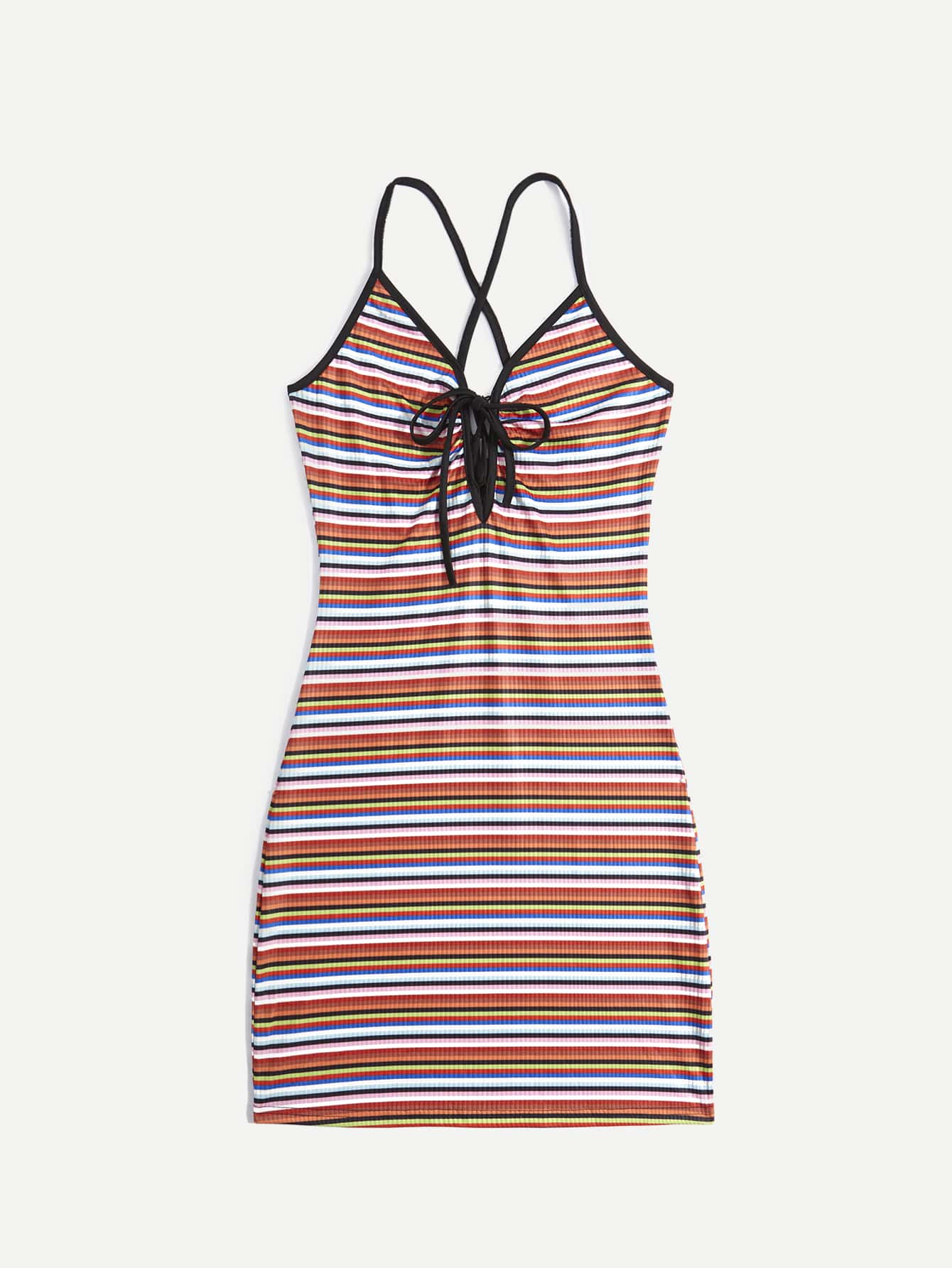 فستان الصليب محبوك بشريط متاين بربطة أمامية الخط جذابة