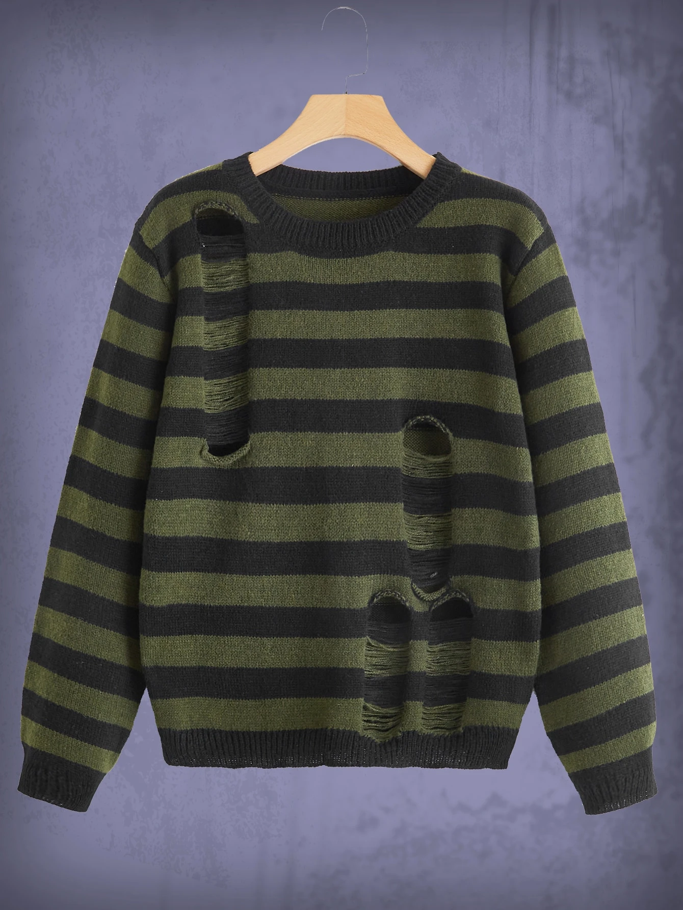 لباس علوي صوف ممزق مخطط منخفض الاكتاف