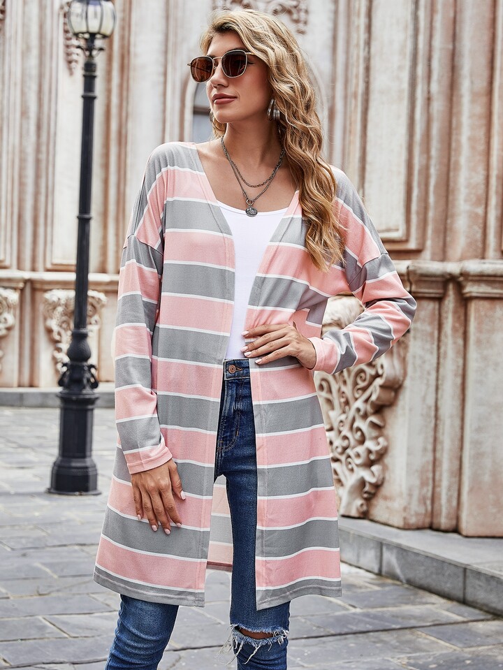 معطف مفتوح من الامام ومنخفض الاكتاف ومخطط