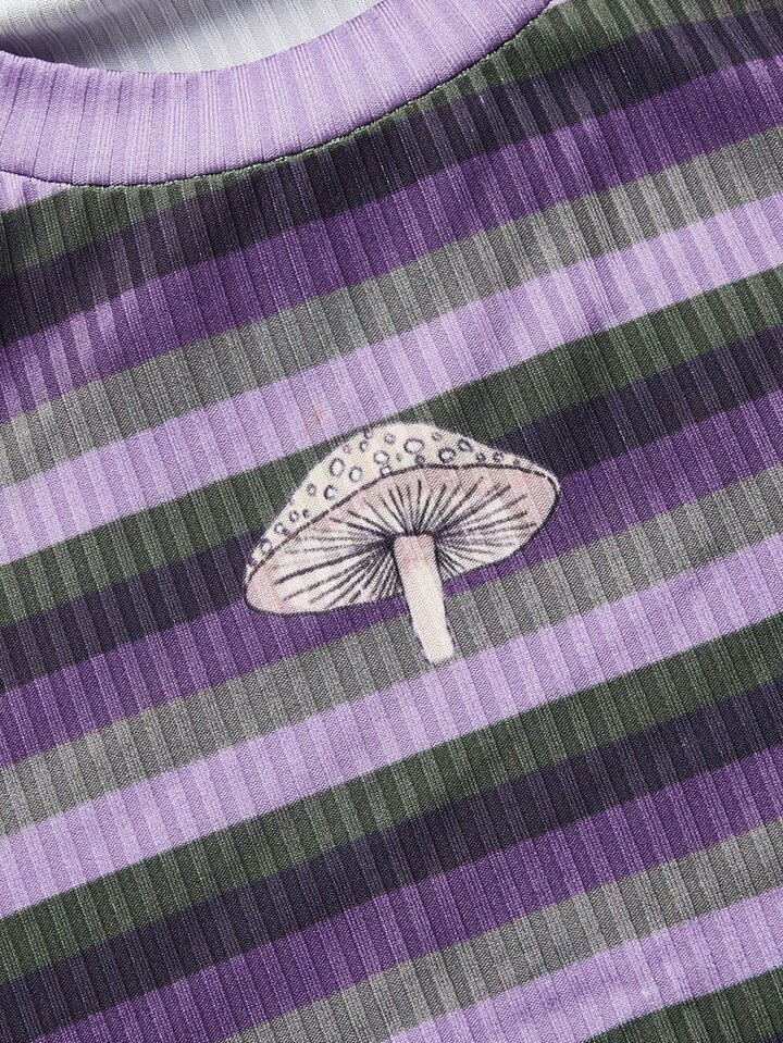 تي شيرت مخطط جرافيك فطر كتف مكشوف