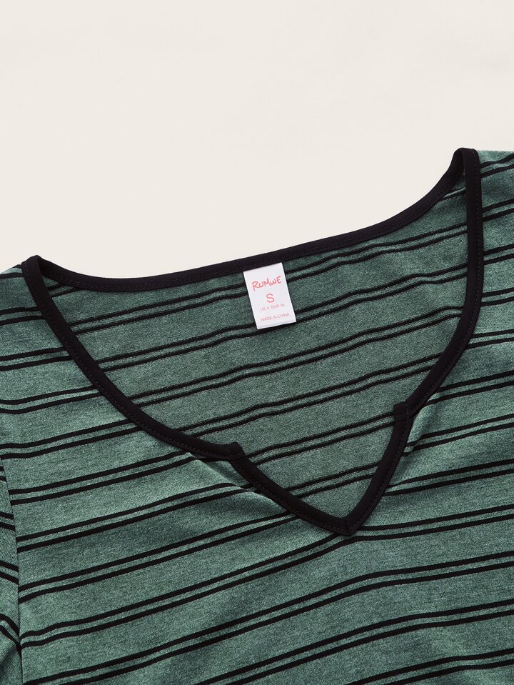تي شيرت مخطط فتحة عنق V