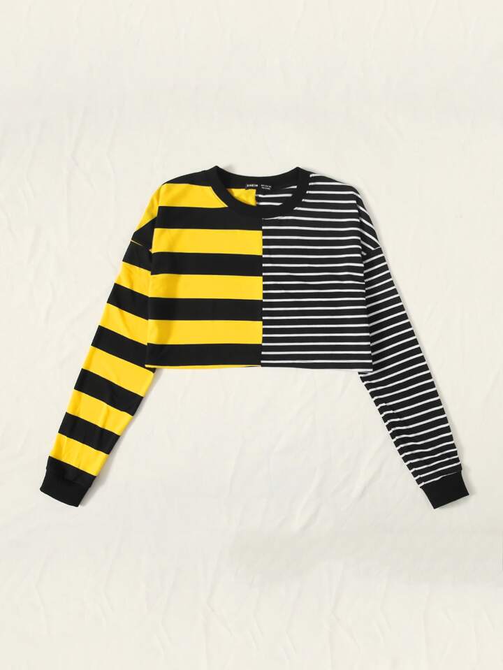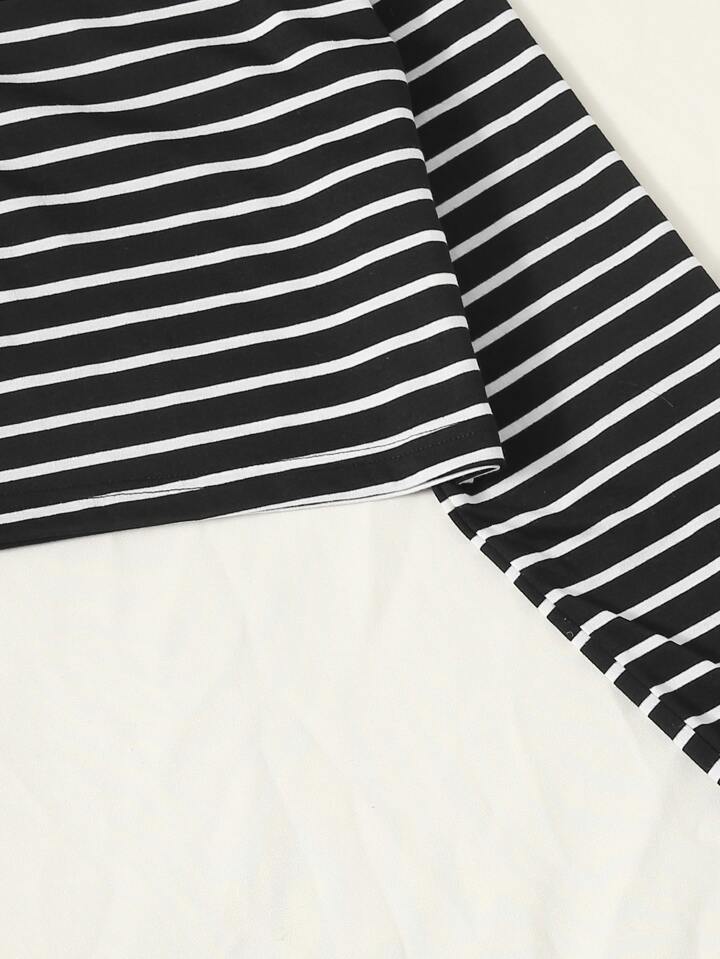 تي شيرت قصير منخفض الاكتاف متصل مخطط