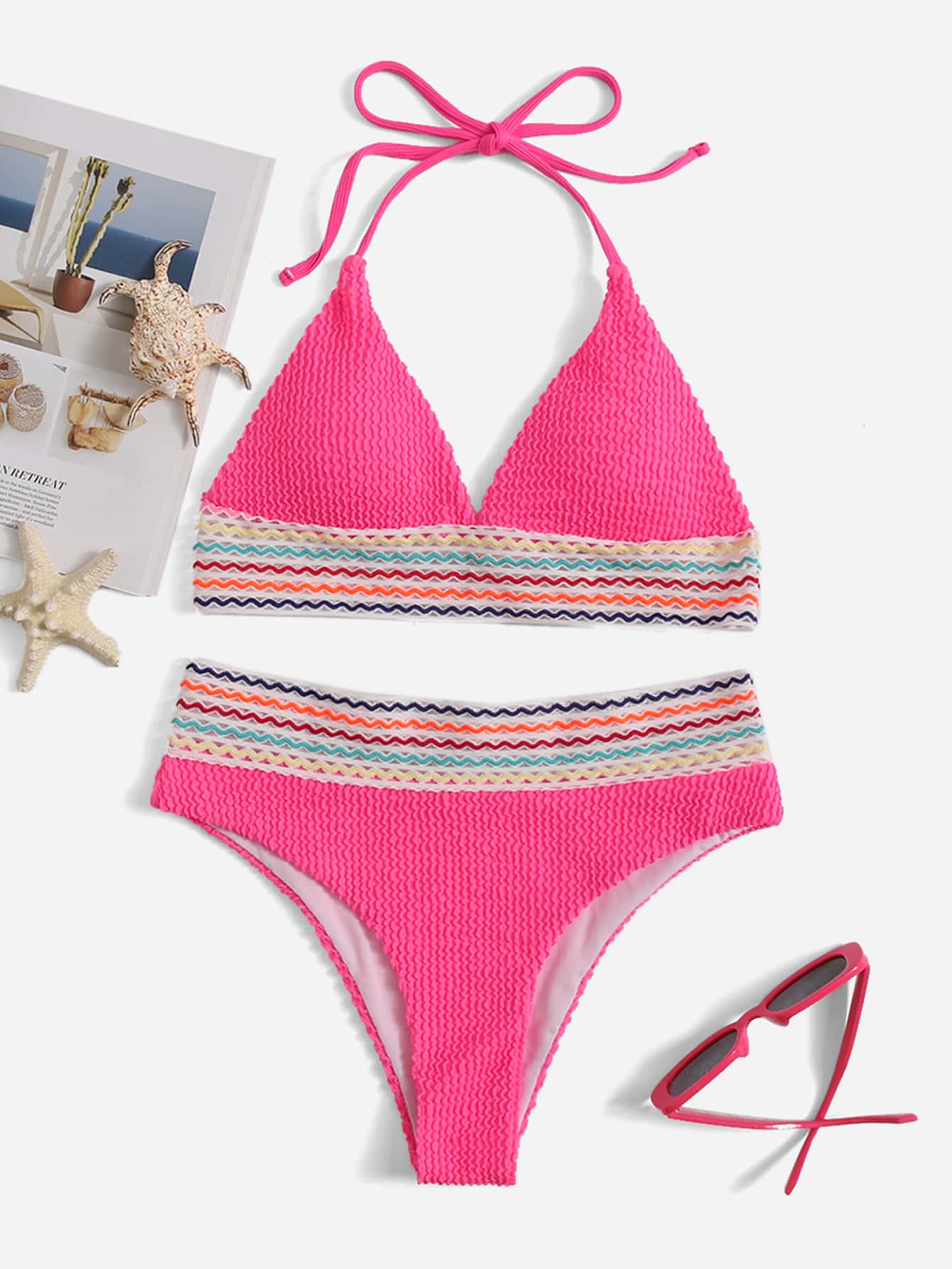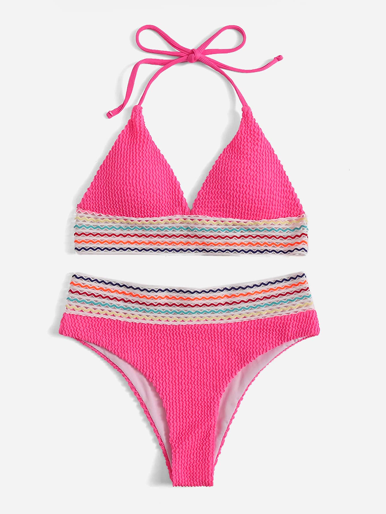 مجموعة بيكيني صيفية برباط حول الرقبة وخطوط م texturized