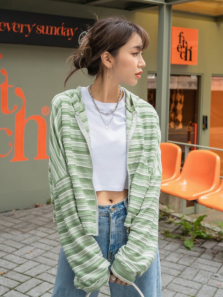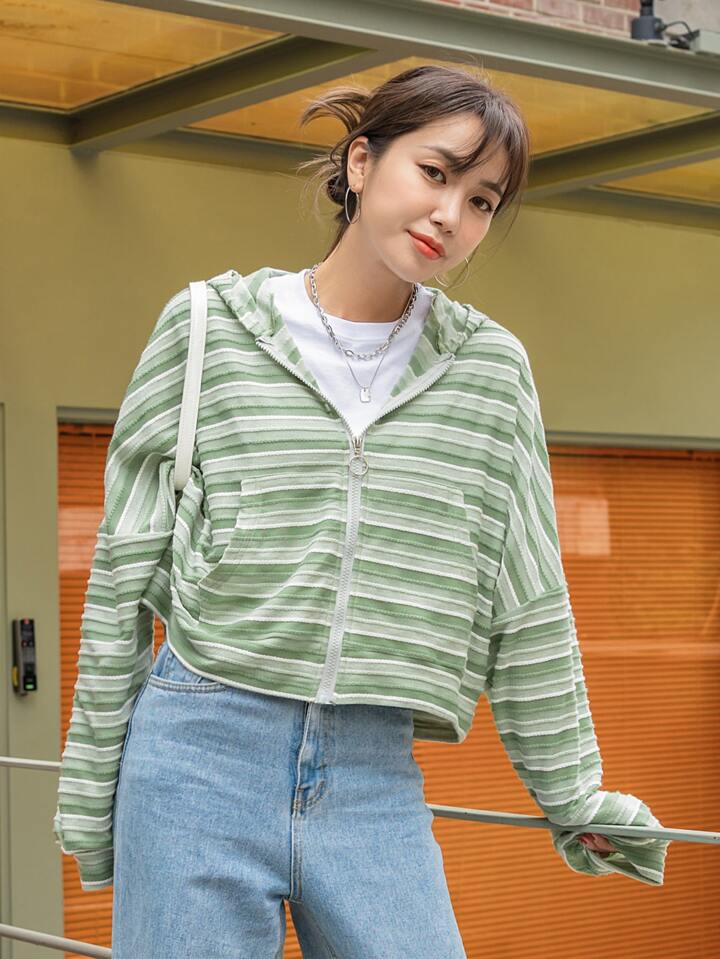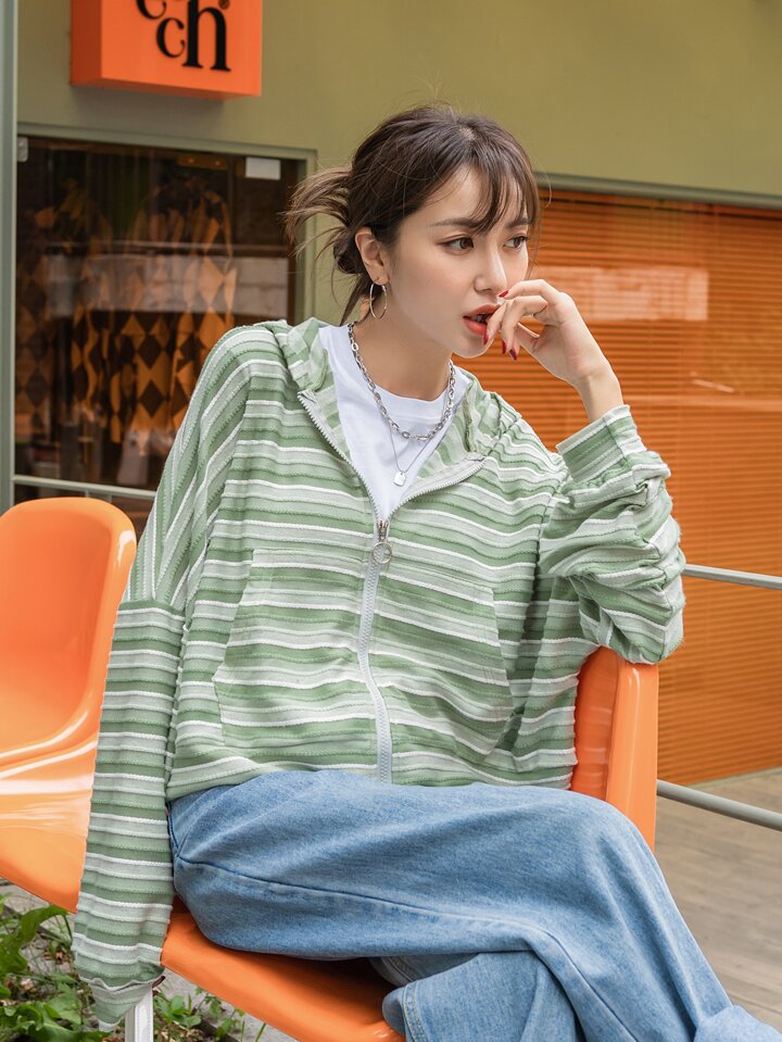 جاكيت مقنع مخطط بسستة من اعلى لاسفل