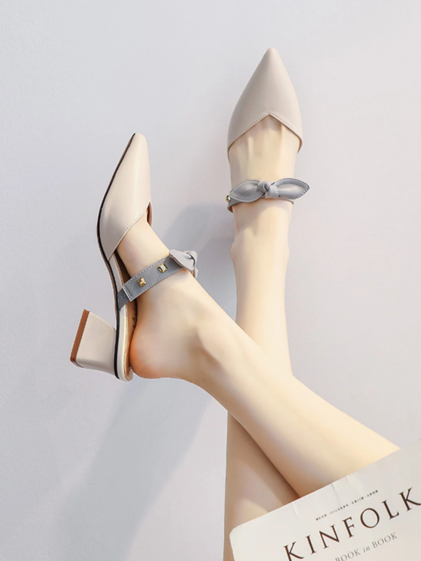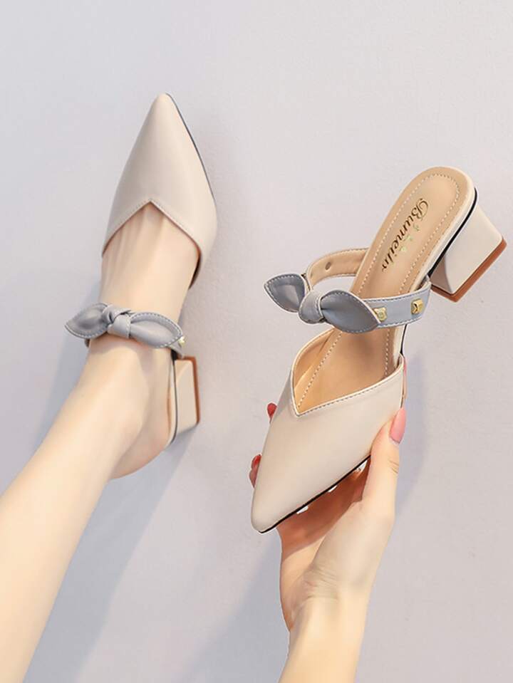 أحذية بكعب عالي عقدة الفراشة حاجز اللون أنيقة