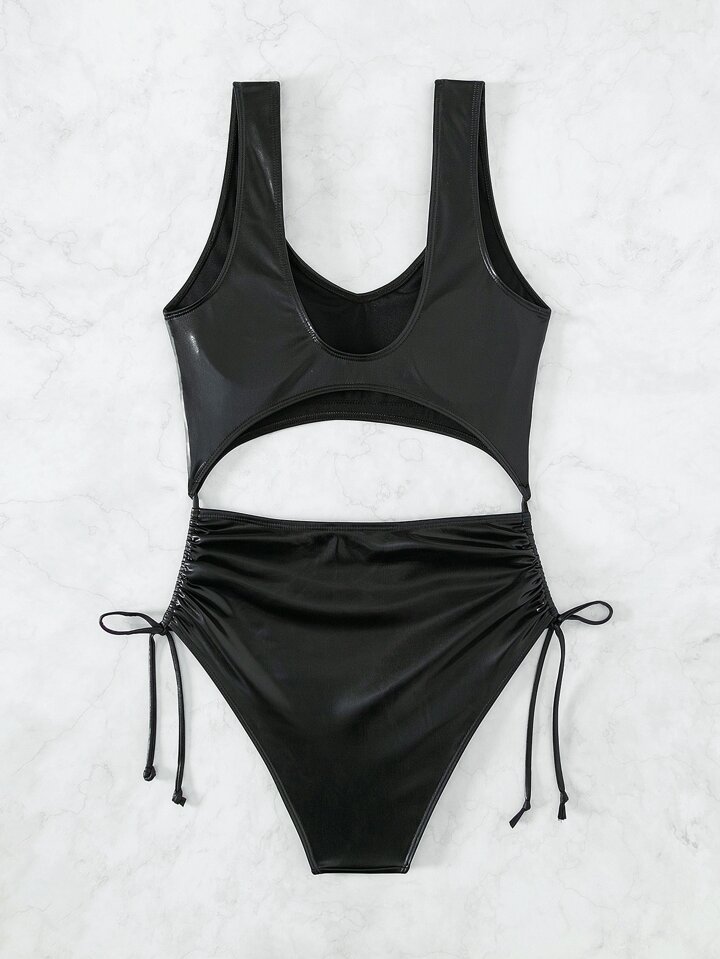 ملابس سباحة قطعة واحدة قص مجوف رباط جانبي جلد صناعي