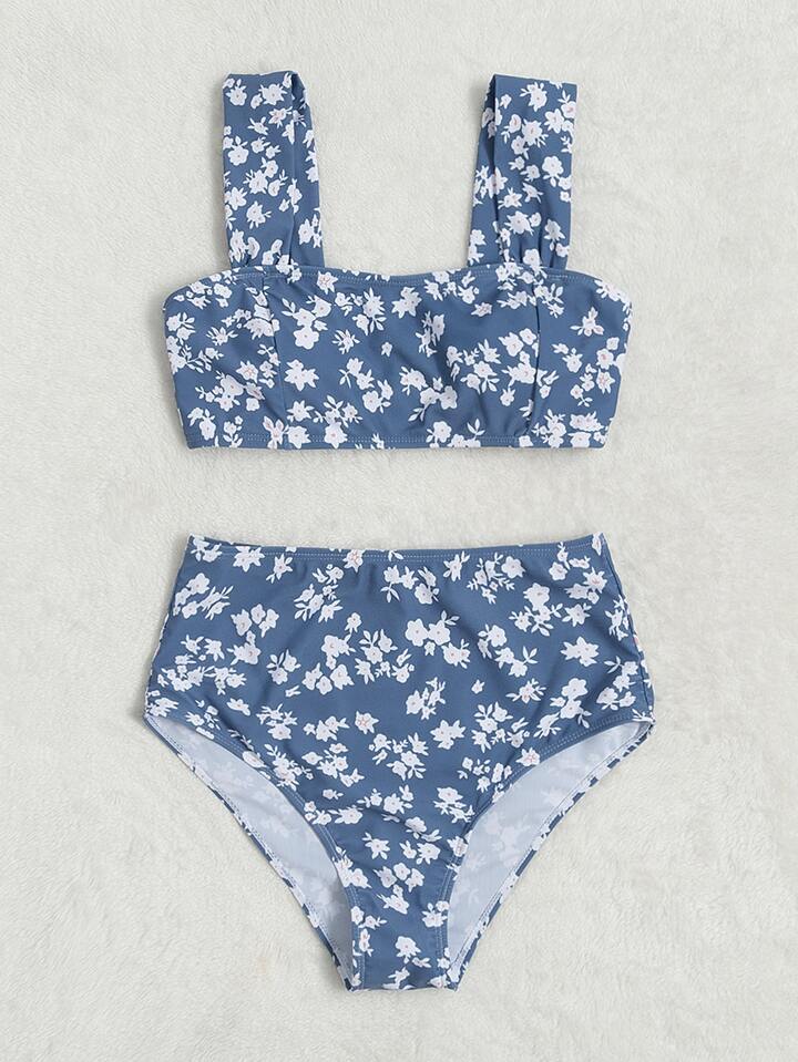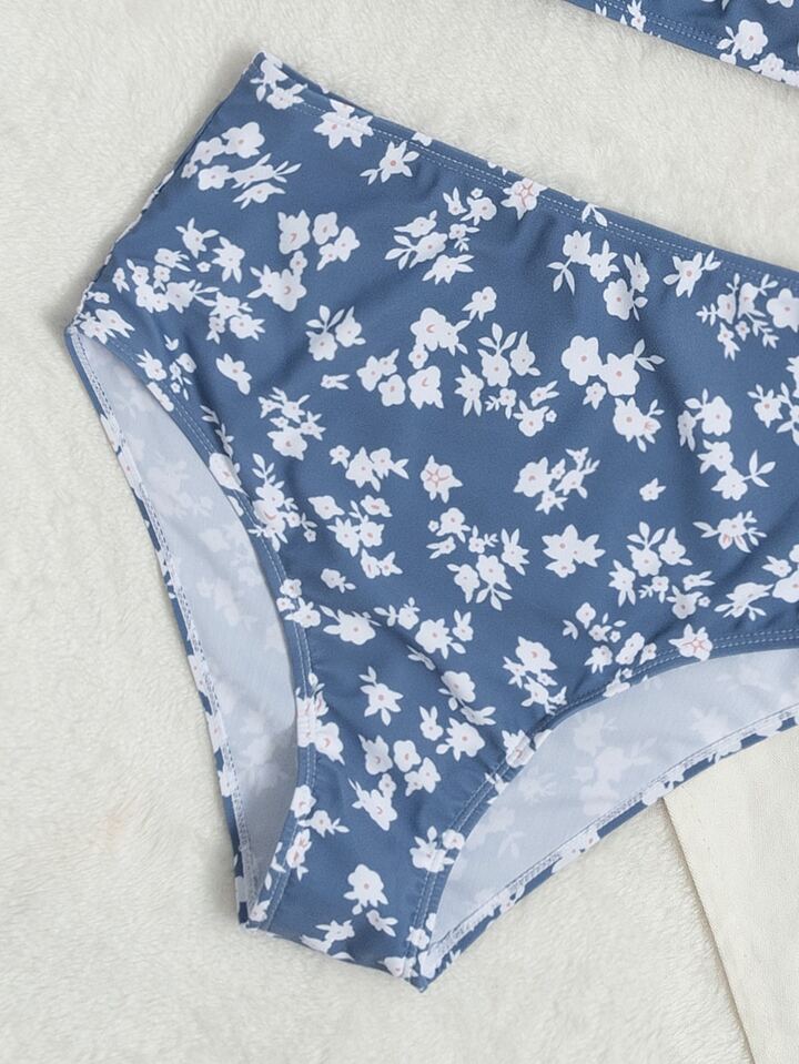 بيكيني بطبعات زهور عالية الخصر للشاطئ في الصيف