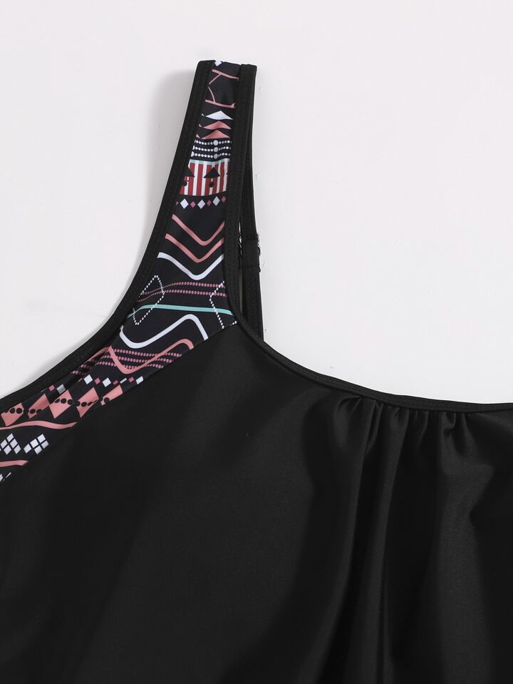 مقاس كبير بطباعة أشكال هندسية تانكيني سباحة طقم لباس علوي تانك & بنطلون قصير 2قطع النمط الغربي بدلة سباحة