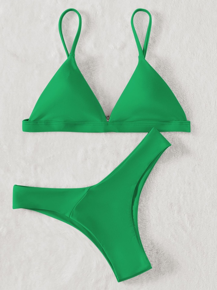 موحدة اللون طقم بيكيني مثلث حمالة صدر & قص عالي لباس قيعان 2قطع بدلة سباحة