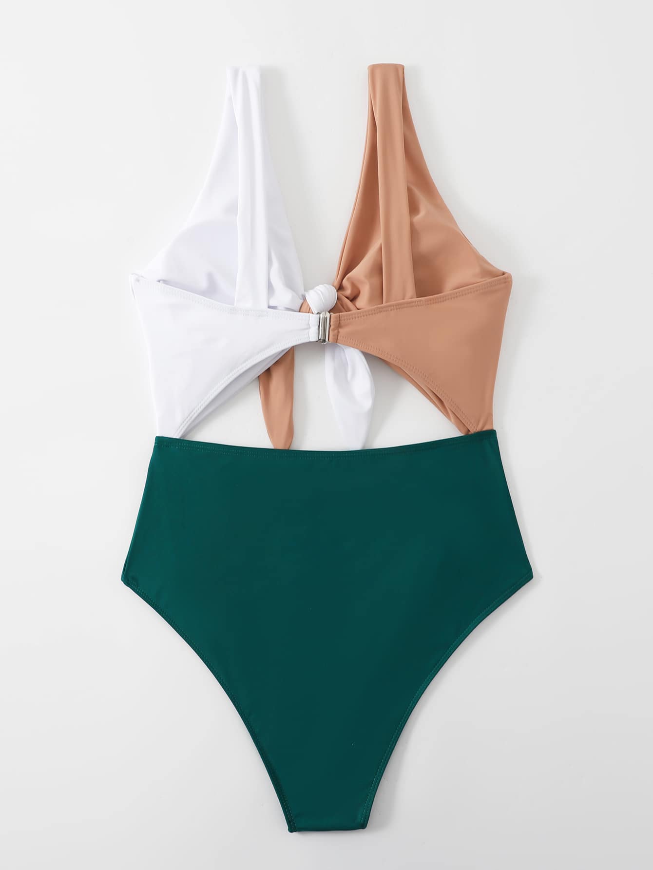 ملابس سباحة قطعة واحدة مقاس كبير مع تصميم لونين وعقدة أمامية للصيف