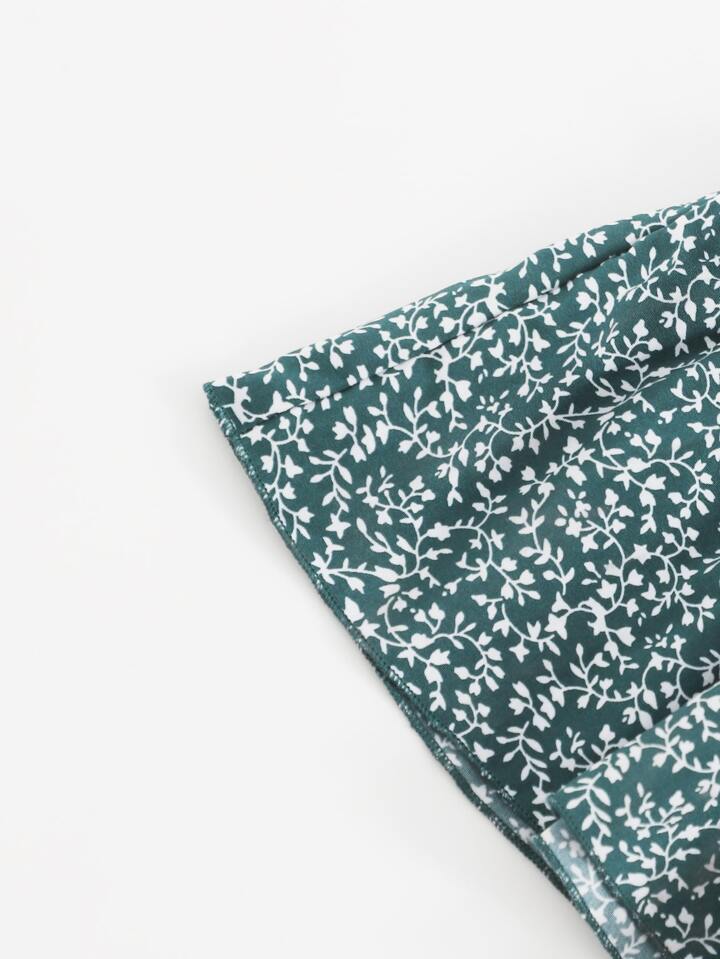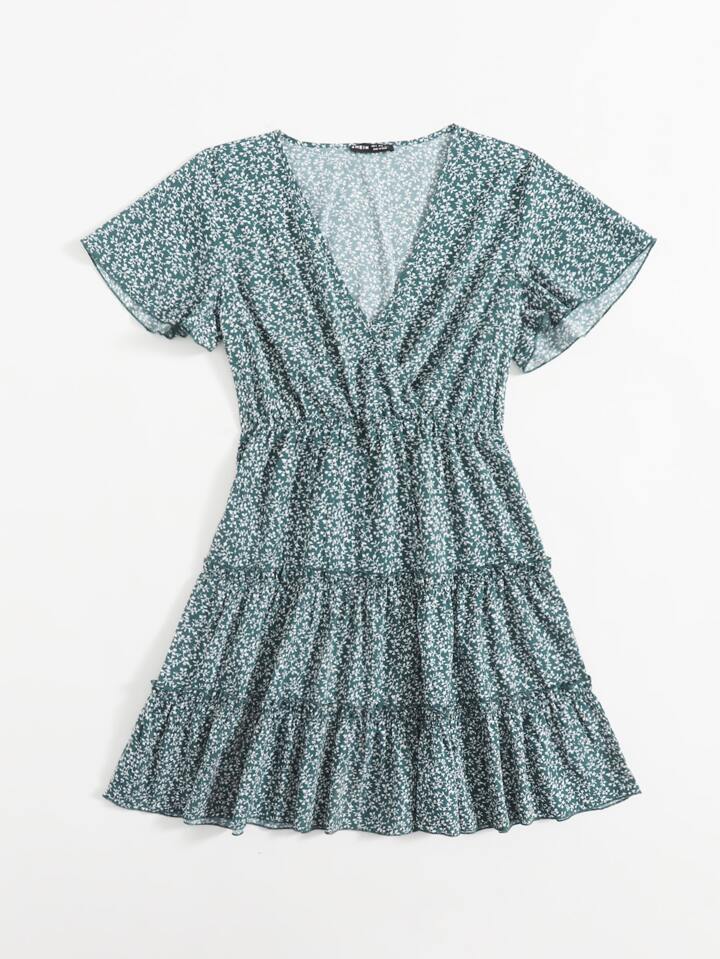 فستان بزهر اقحوان ومقلم بهدب بياقة متداخل