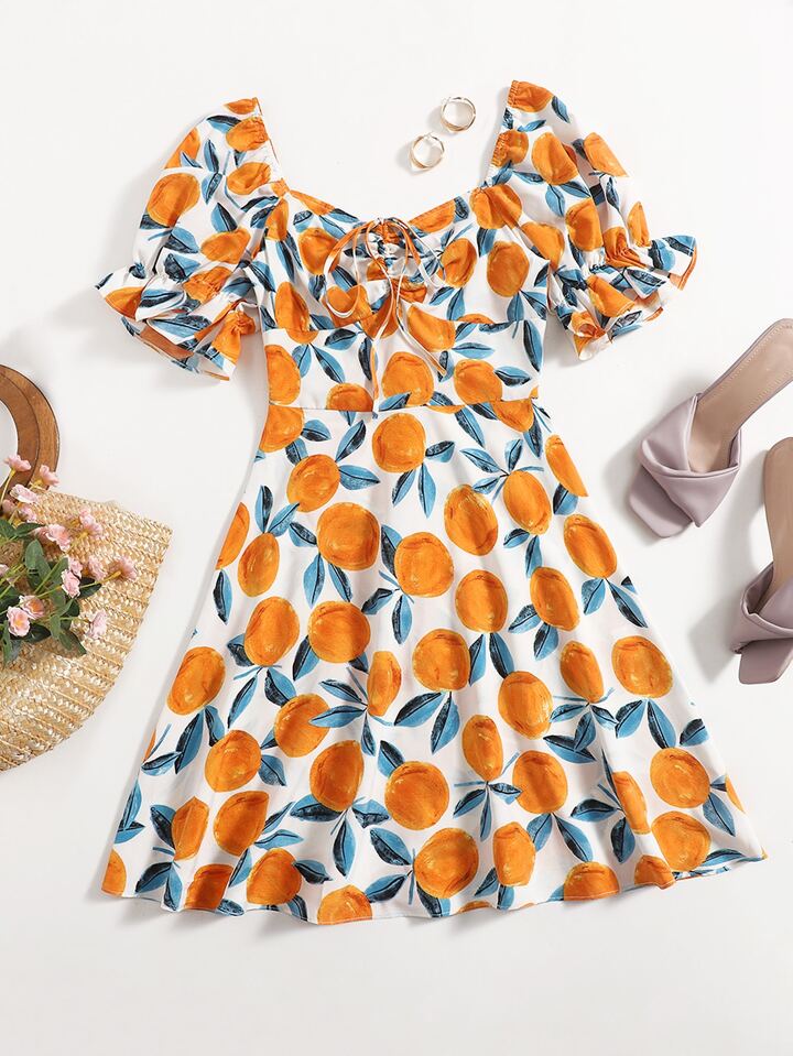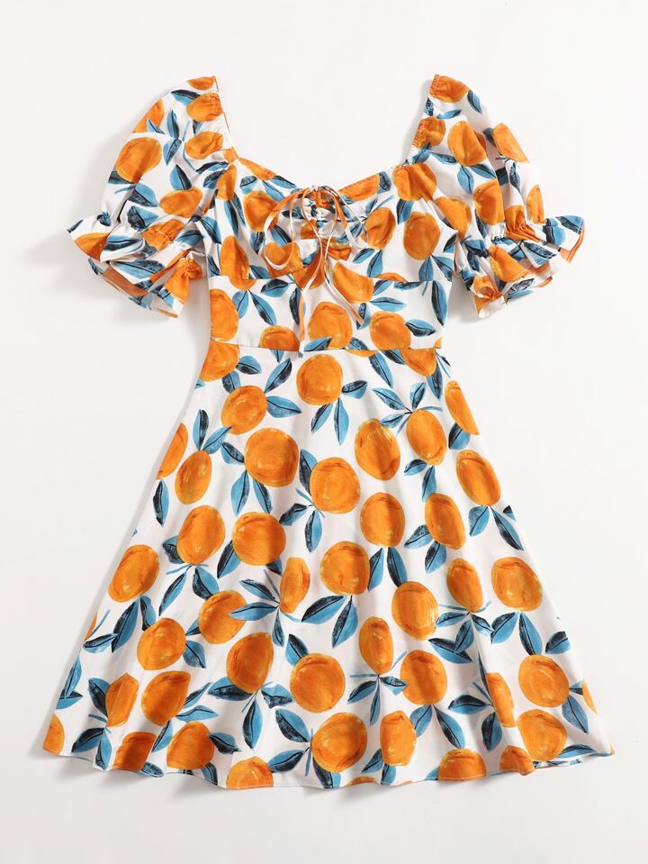 فستان رباط الظهر صور الفواكة و الخضروات بوهو