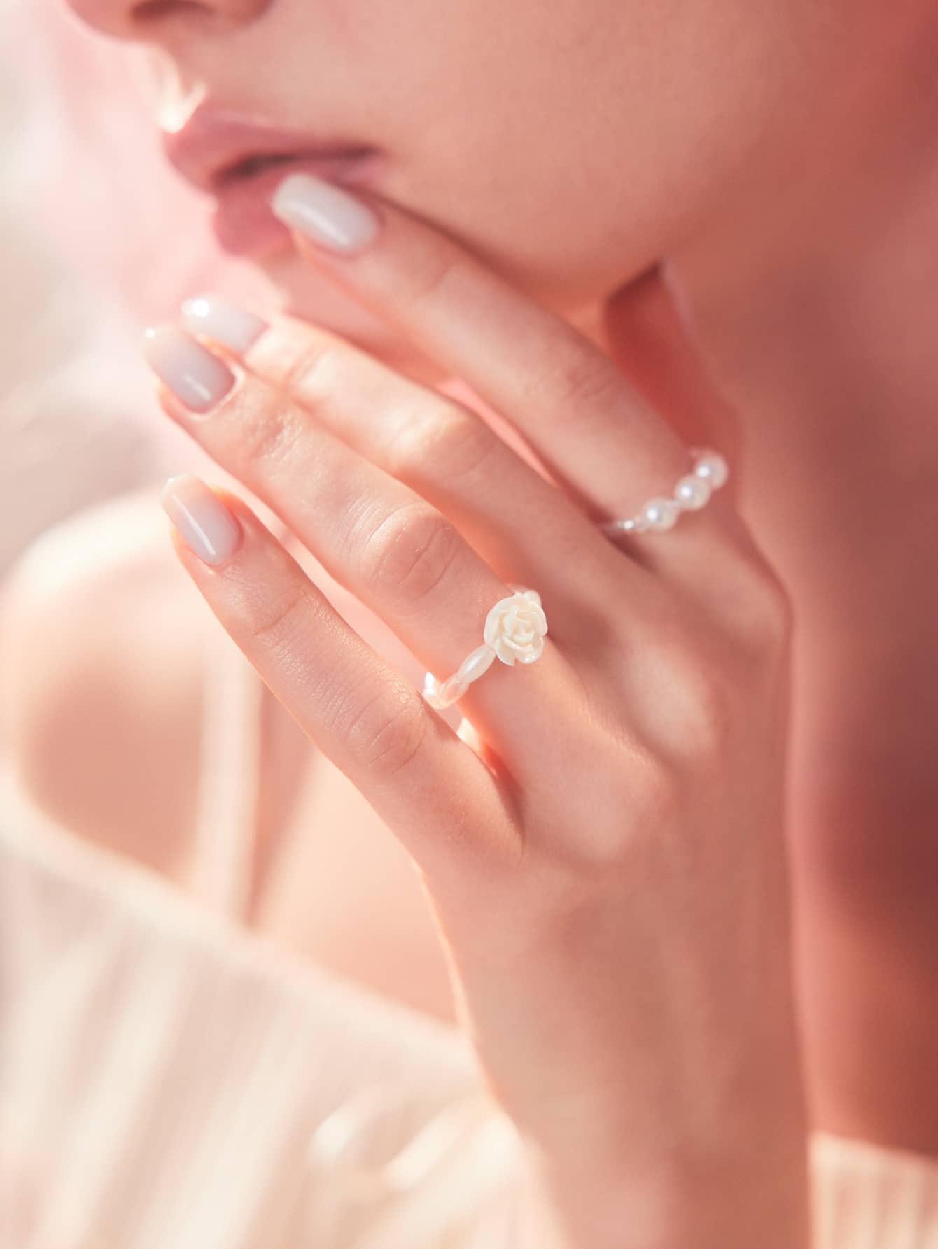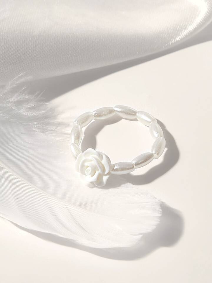 Sweetness خاتم خرز زهرة و مزخرف بلؤلؤ اصطناعي 2 قطع