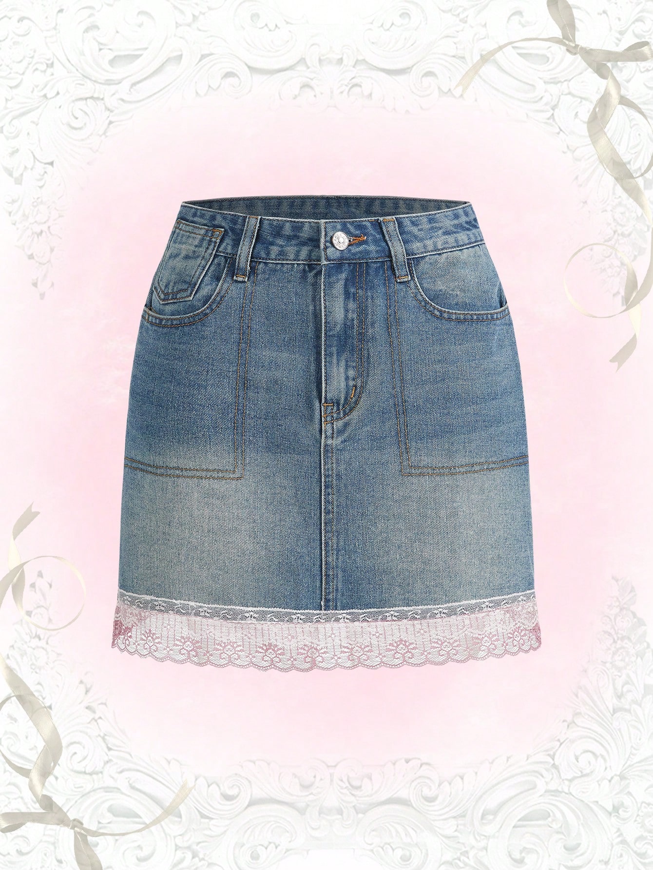 Sweetness تنورة دنيم بحافة دانتيل متباين