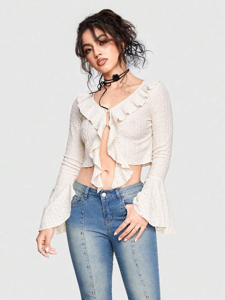 Sweetness قميص نسائي بأكمام طويلة واسعة على شكل جرس جذاب ولطيف