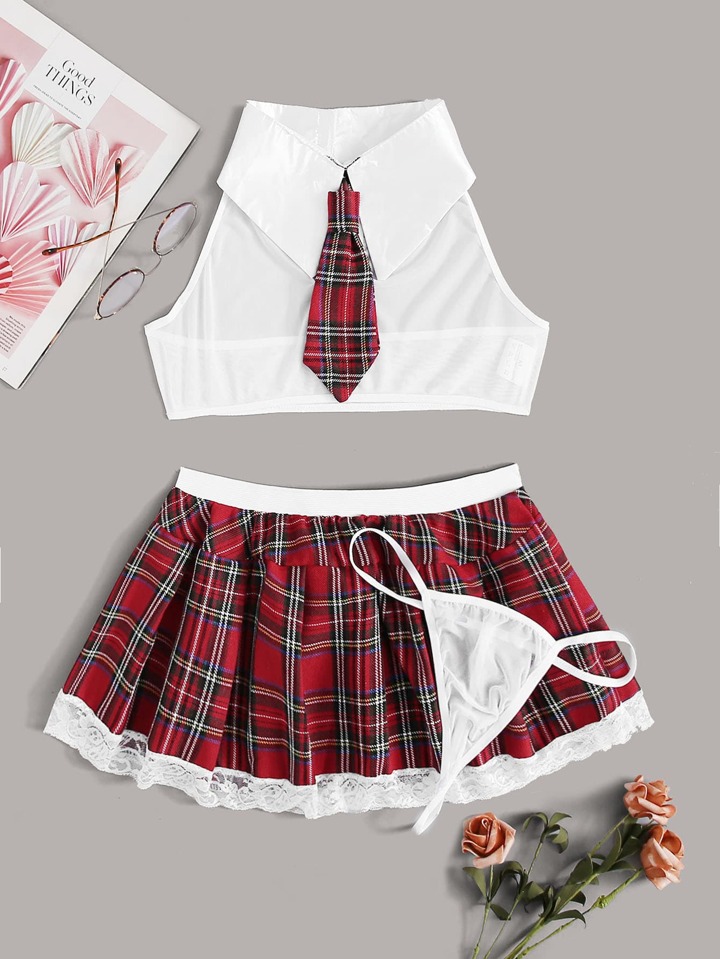 طقم سكسسي زي مربعات مغ سروال داخلي رفيع