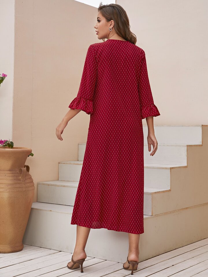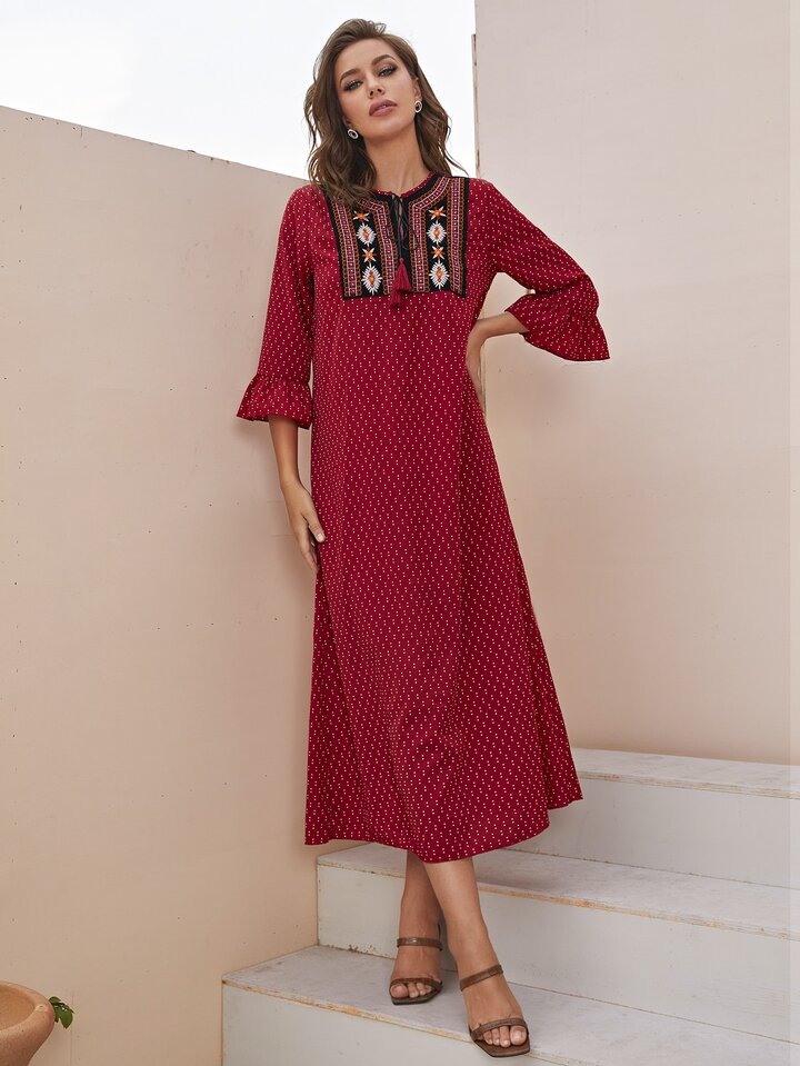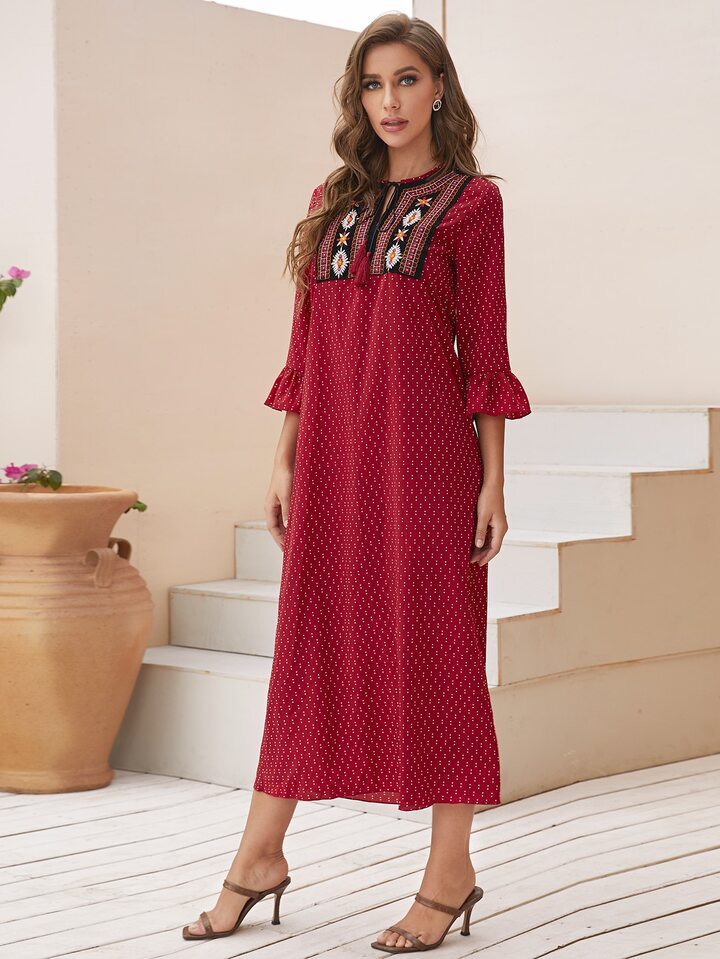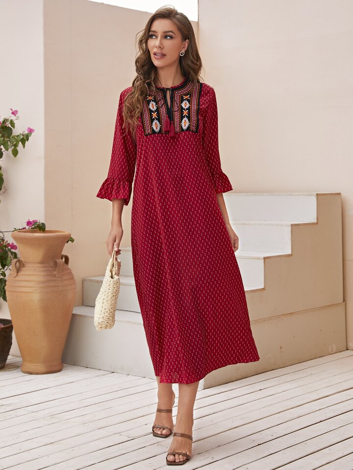 فستان بنقاط البولكا مطرز بزهر مع ربطة عنق