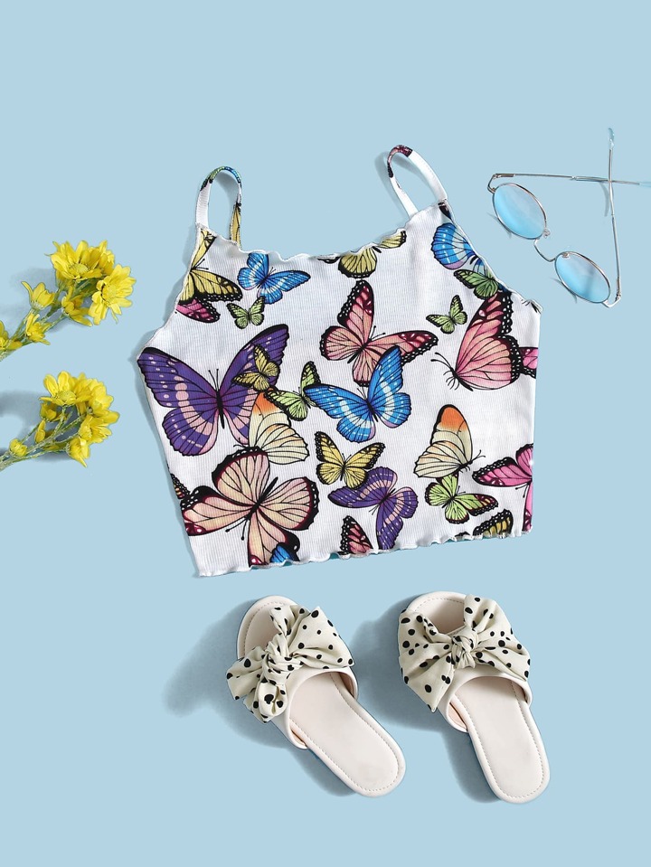 لباس علوي كامي بطباعة فراشة للفتيات المراهقات