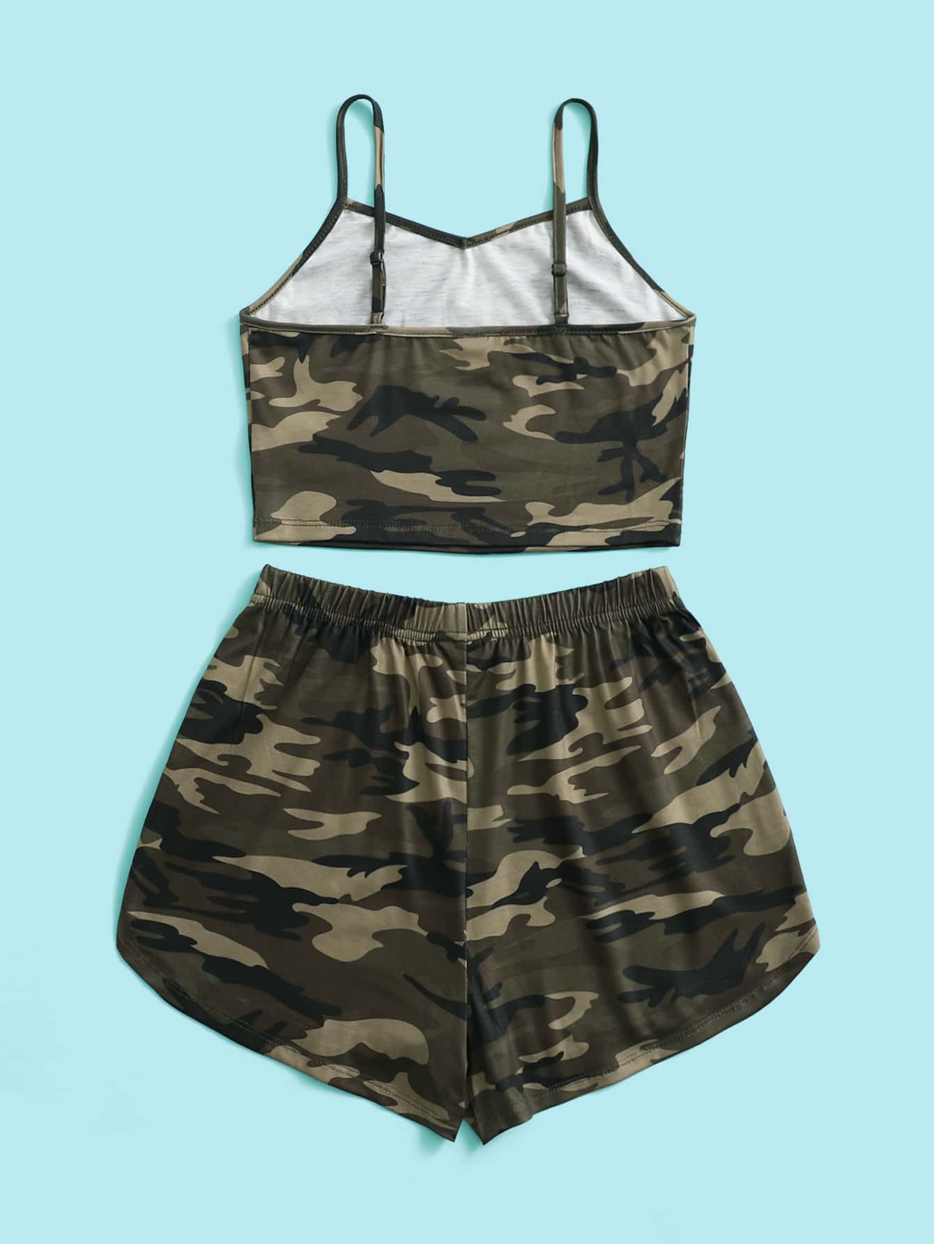 طقم شورت مع لباس علوي كامي بطباعة مموة للبنات المراهقات