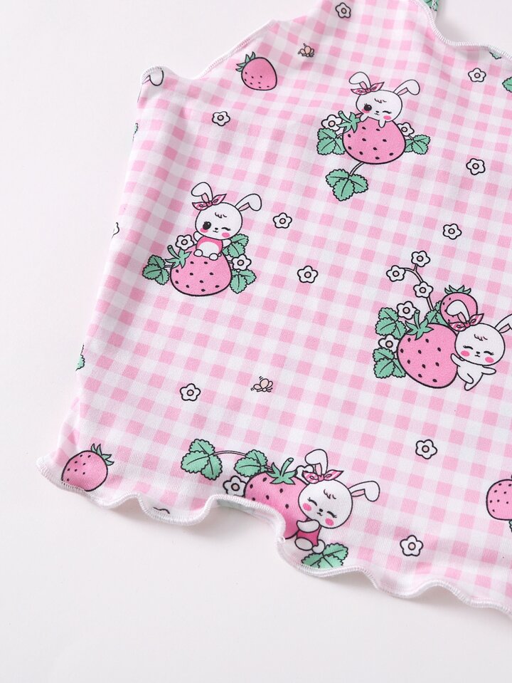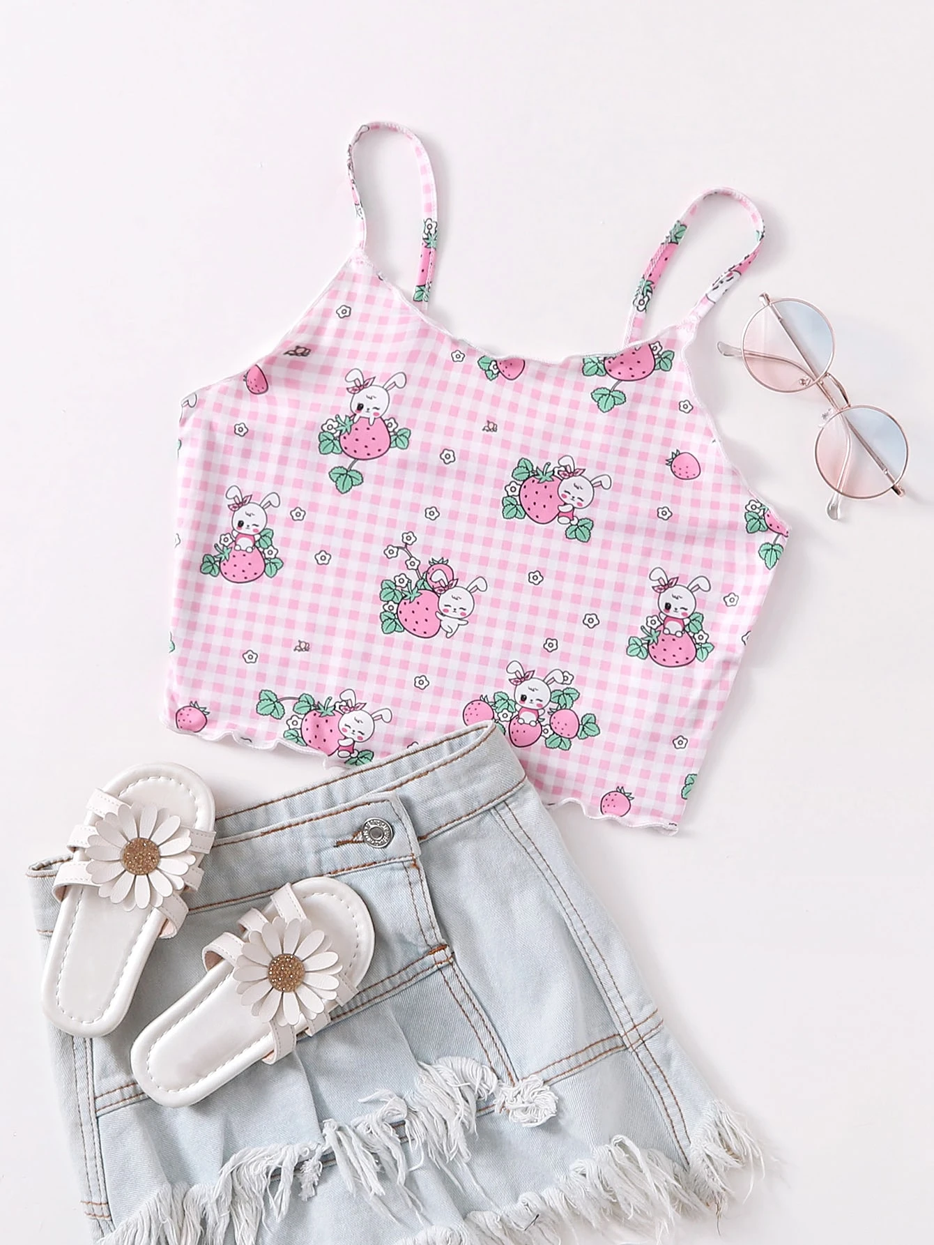 صدرية كامي قصير تصميم رسوم كارتون و بطباعة شبكة مقلم نمط نبات الخس للفتيات المراهقات