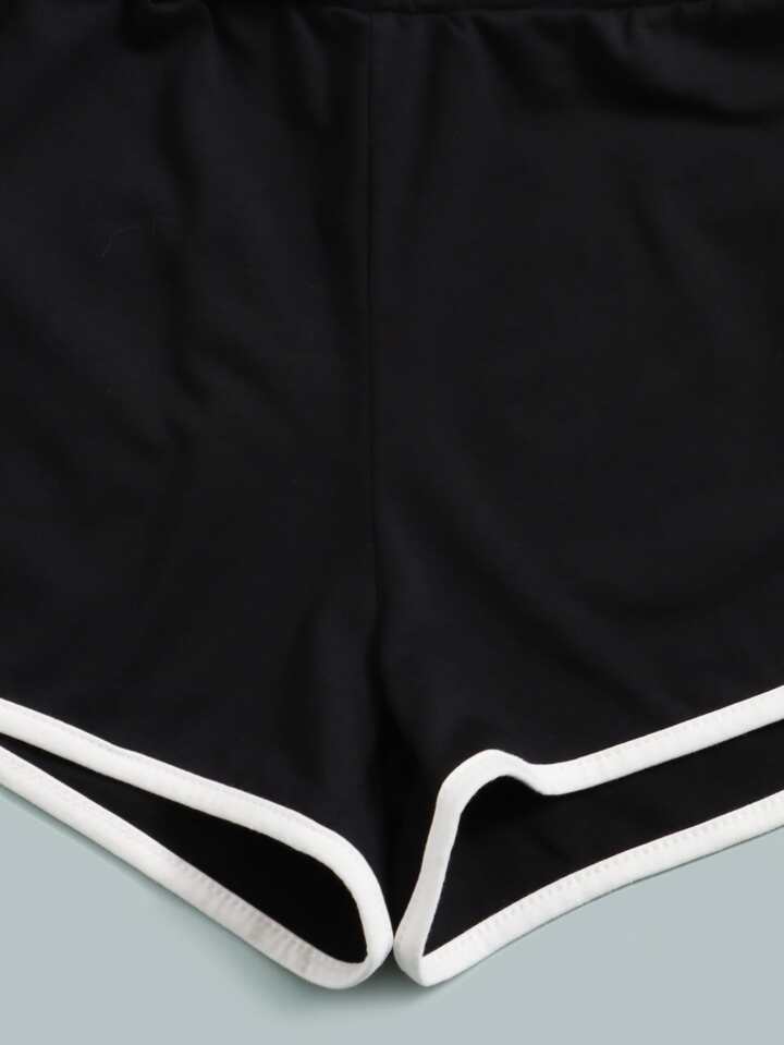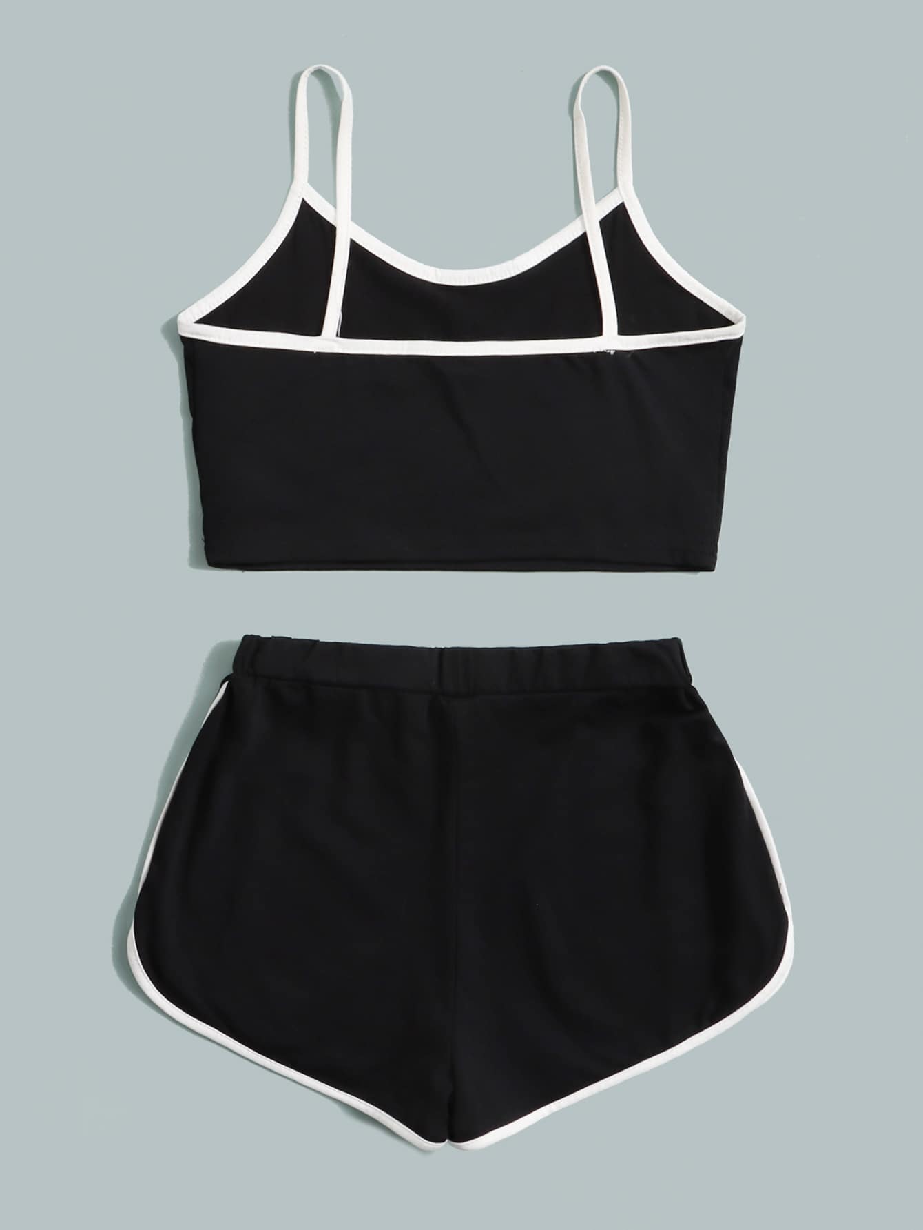 طقم شورت مع لباس علوي كامي قصير بشريط متباين للفتيات المراهقات