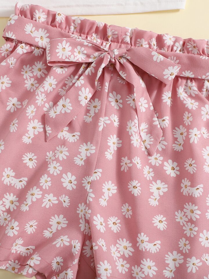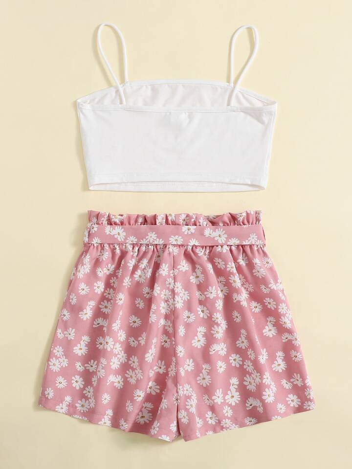 للفتيات المراهقات صدرية كامي قصير و خصر عالي بالتجاعيد شورت بحزام طقم