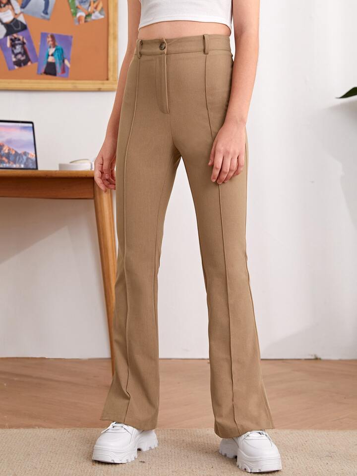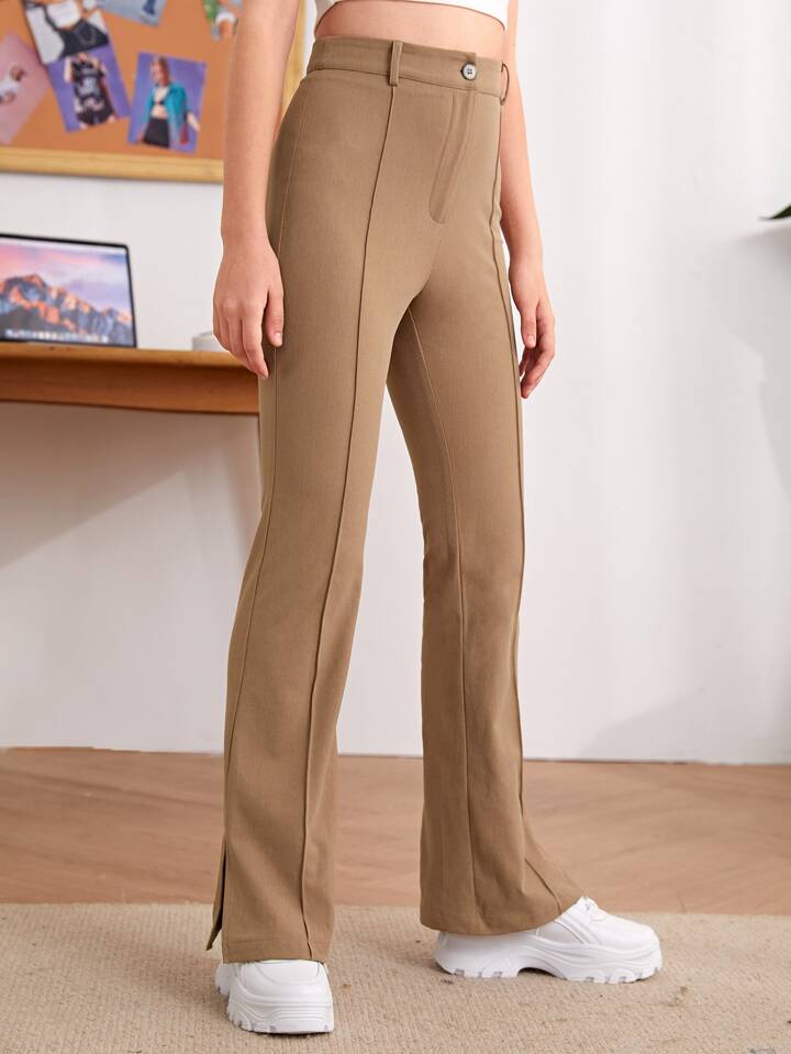 بنطلون بحافة مشقوق بخصر عالي للبنات المراهقات