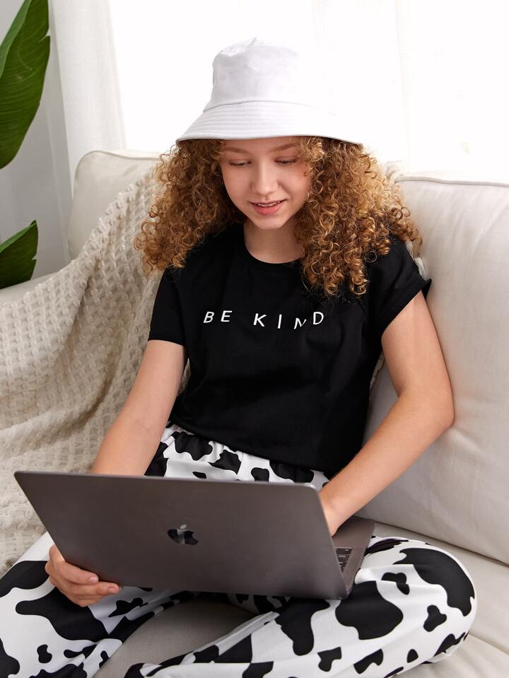تي شيرت بجرافيك عبارة للبنات المراهقات
