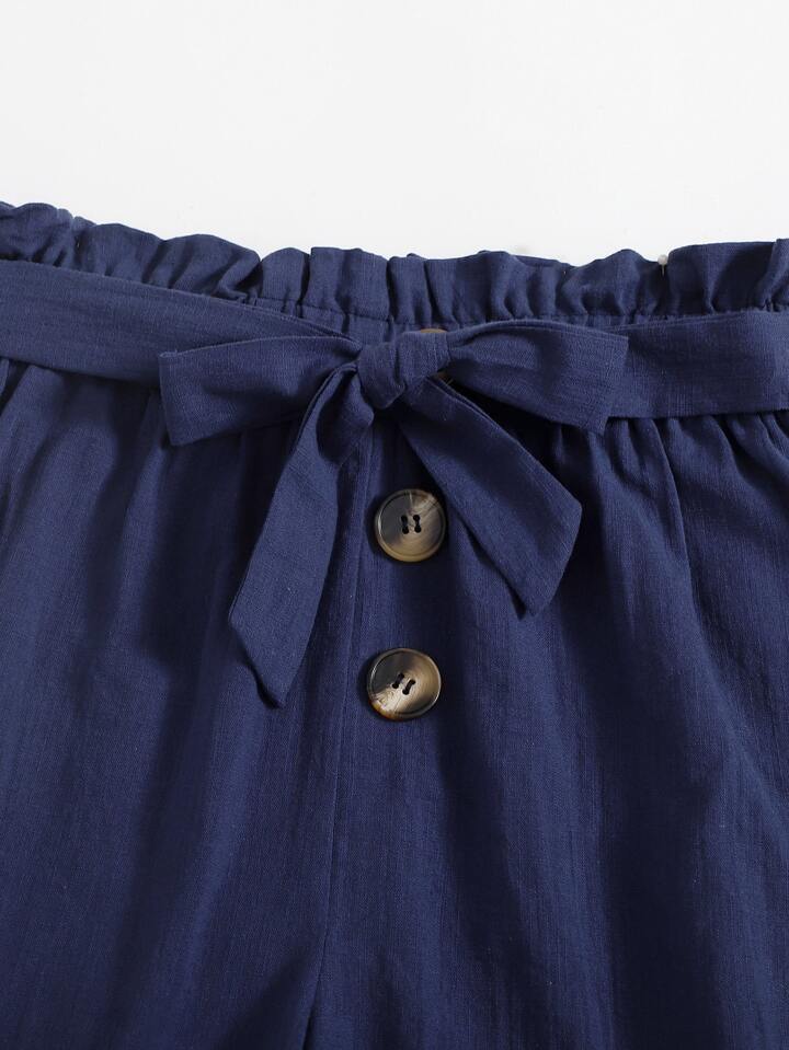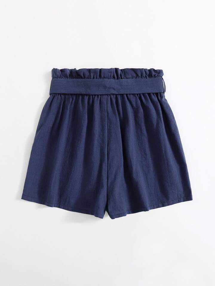 شورت بحزام بخصر جيب ورقي للبنات المراهقات