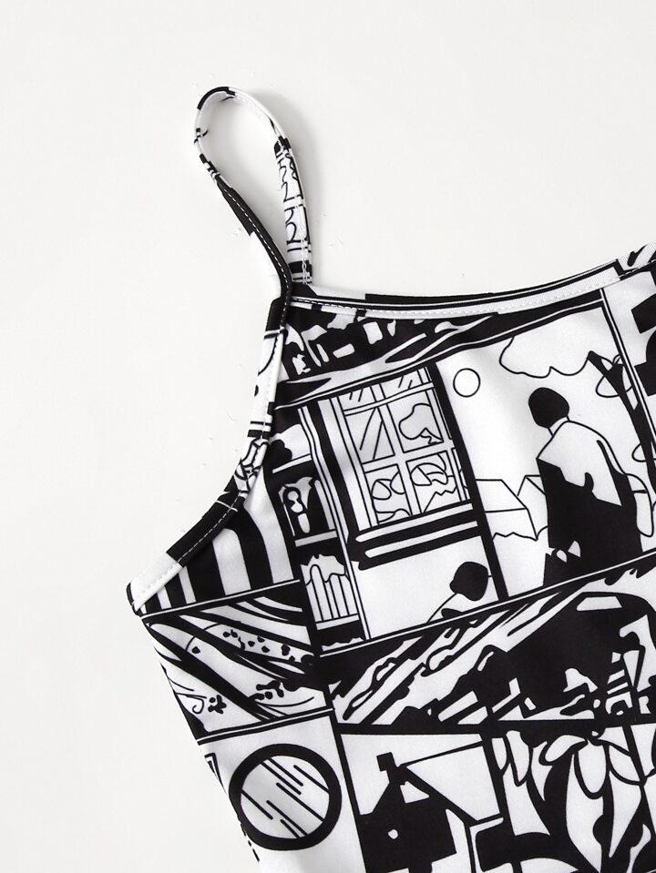 طقم شورت راكب دراجات مع لباس علوي كامي كروب بطباعة فن البوب للبنات الصغار
