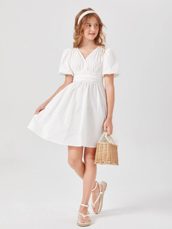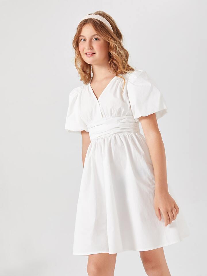 فستان فلير مكشكش بأكمام منفوخة فتيات