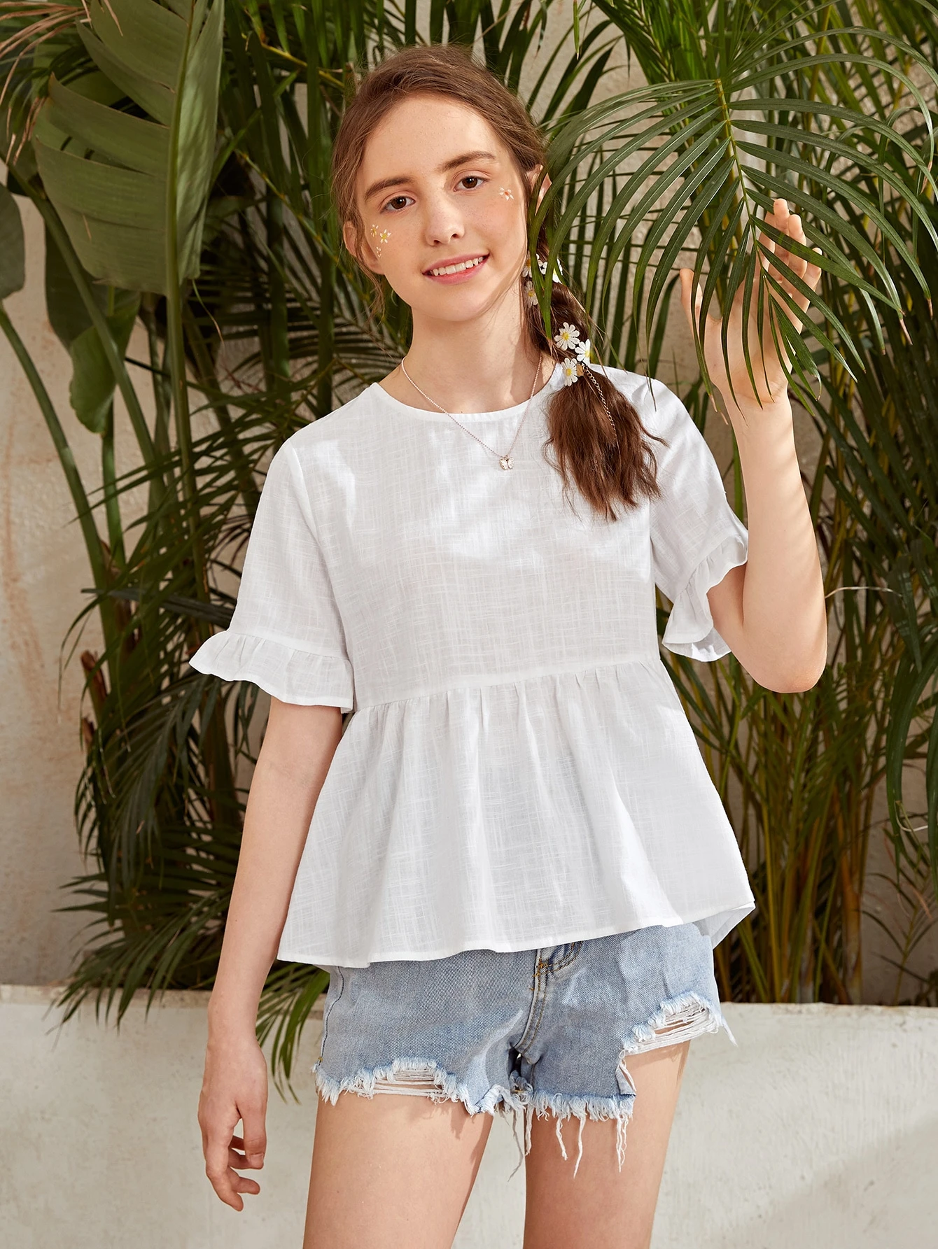 لباس علوي سموك بكفة مكشكش للفتيات المراهقات