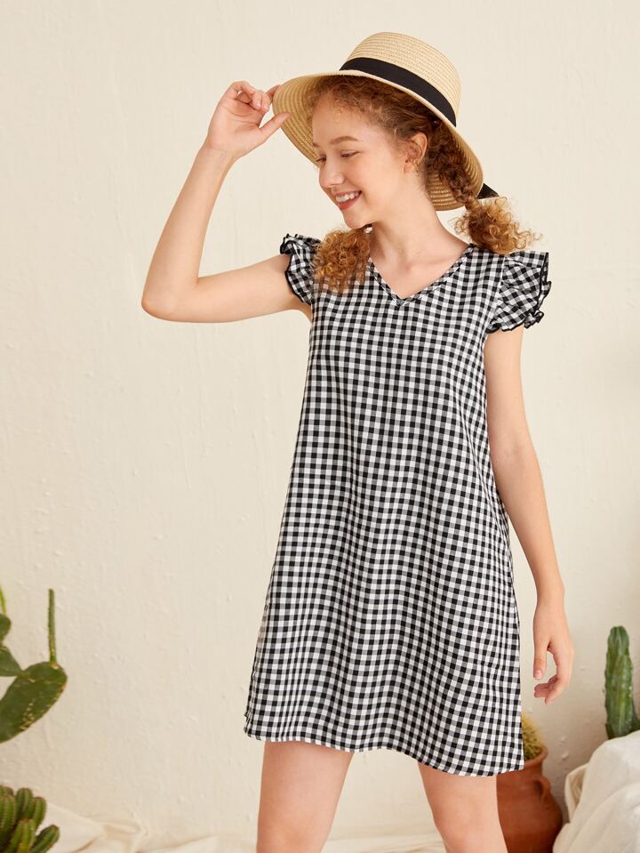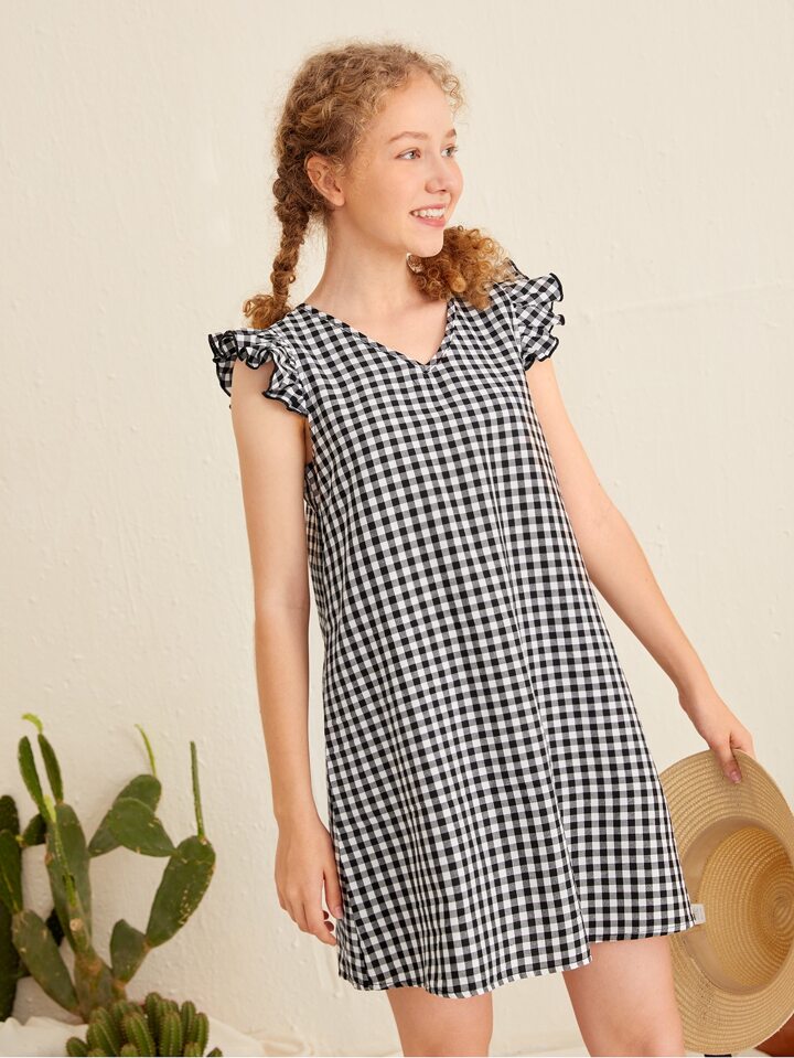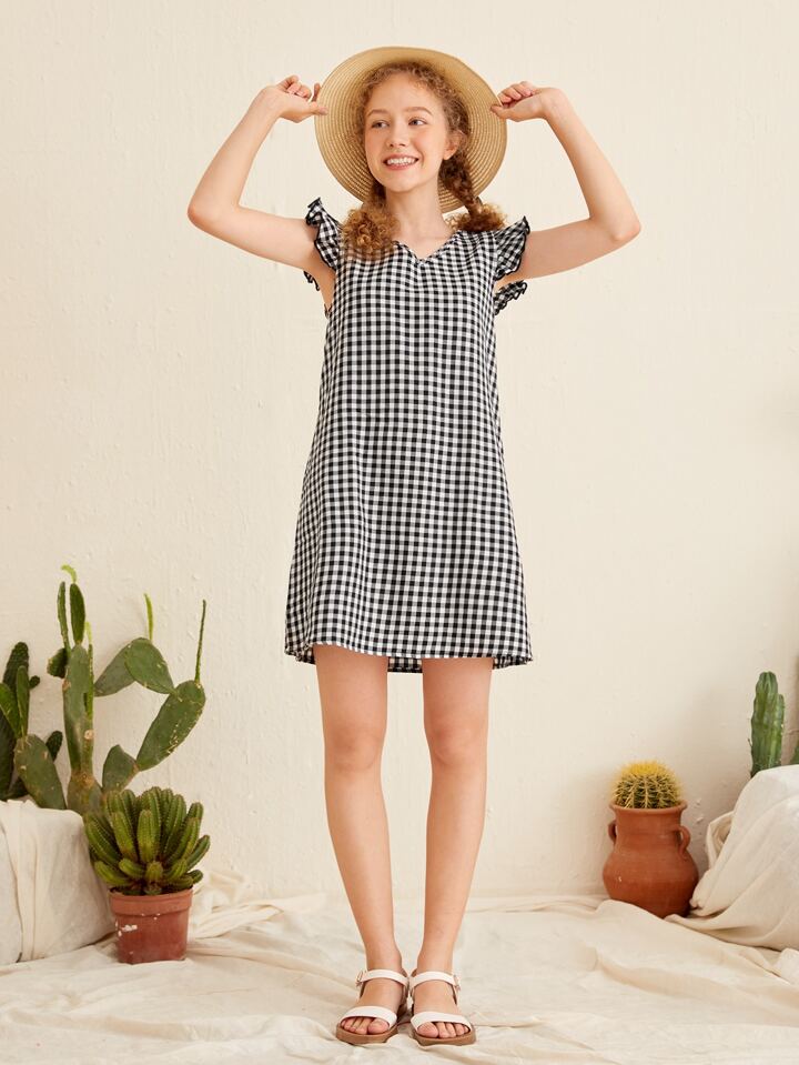 فساتين بنات الدانتيل منتفض قماش قطن المربعات لطيفة